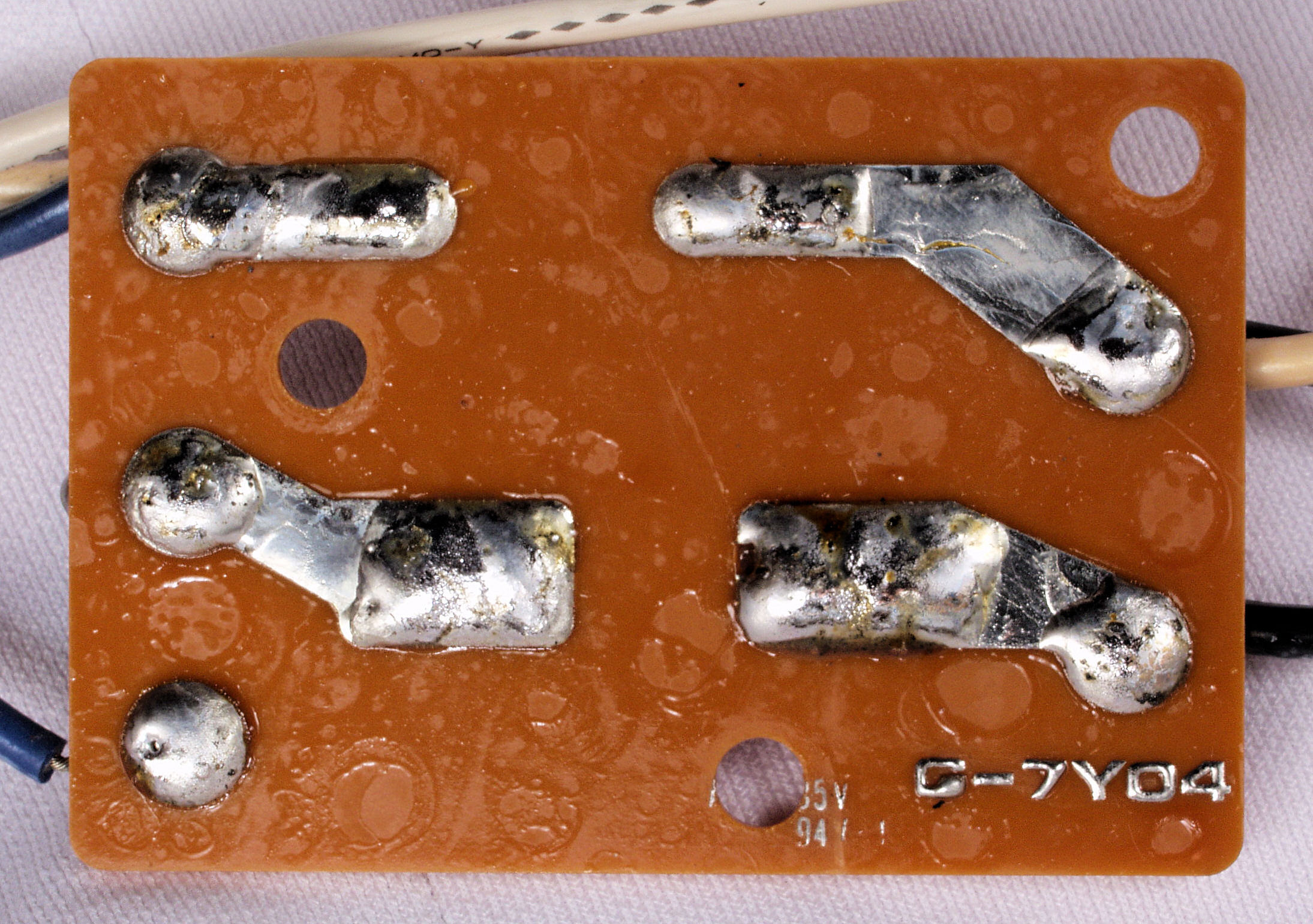 C66. 修理中 圧縮板にボンドを塗って固めている、フューズ取付圧縮板。