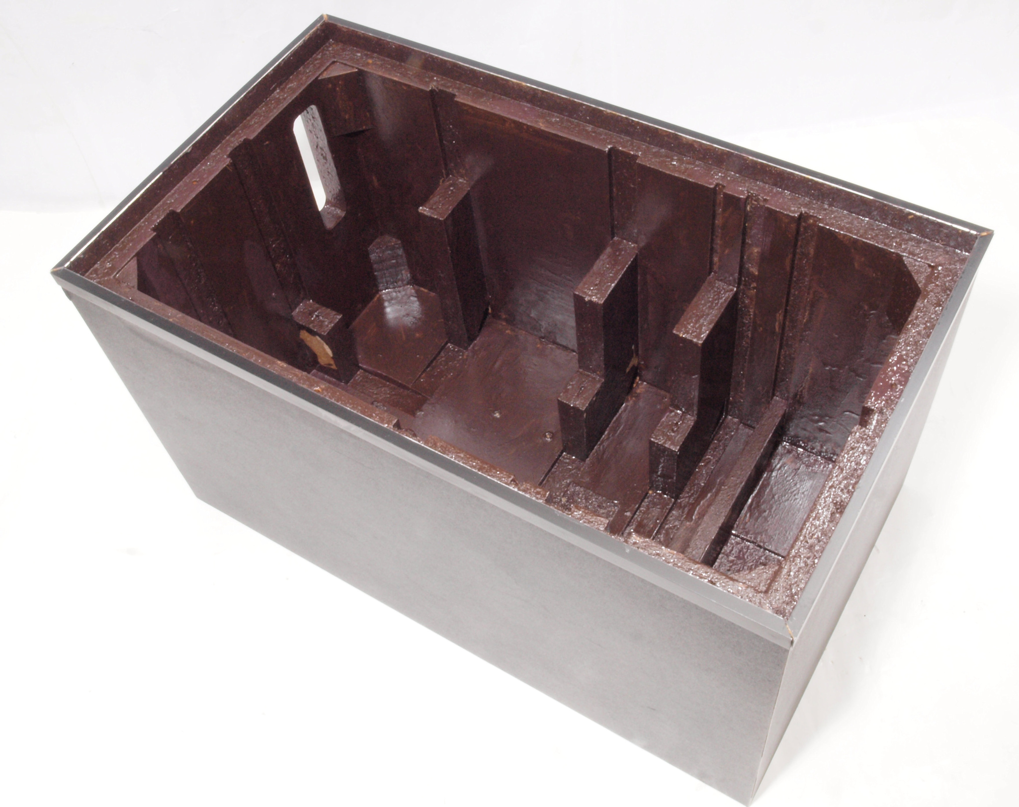C46. 修理後 接着材が劣化した木箱、下前右から見る。 さらに、塗装する。