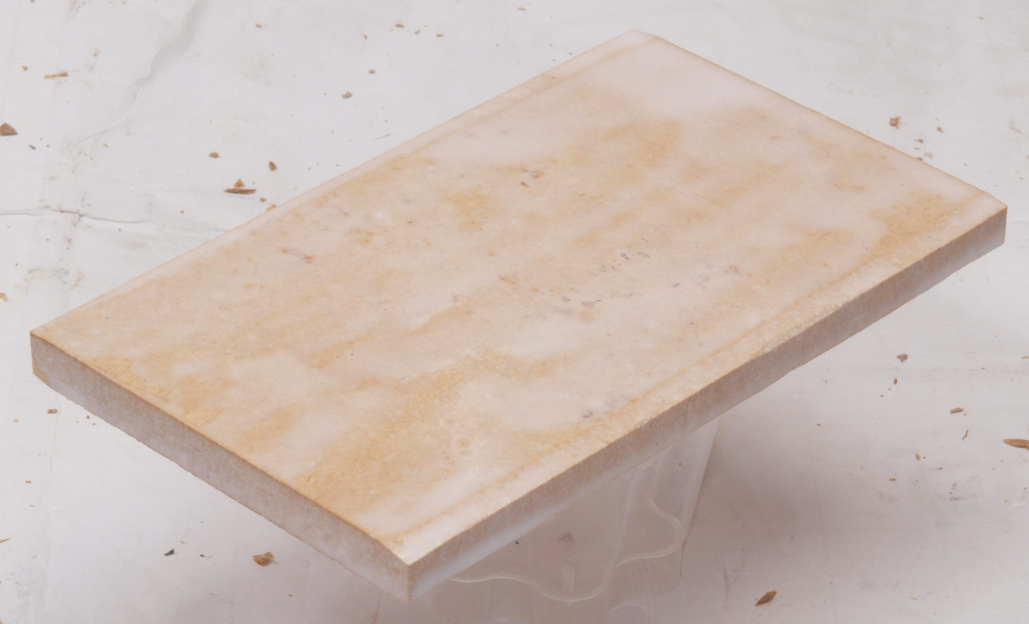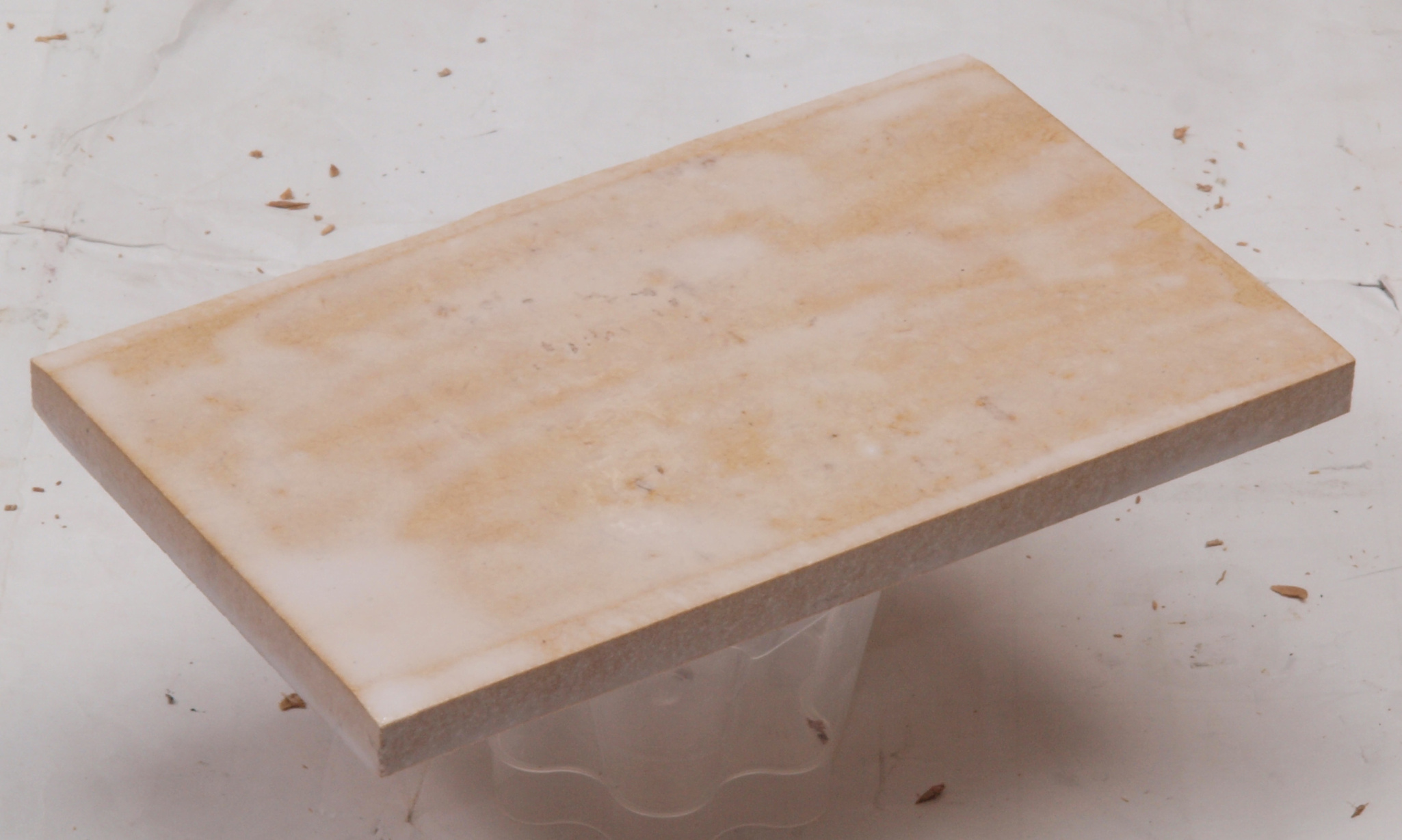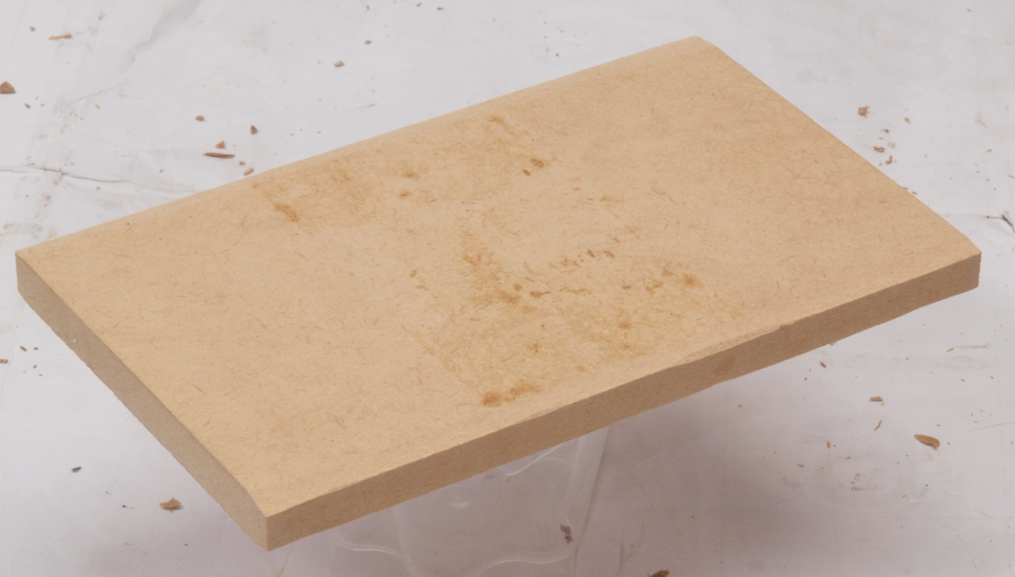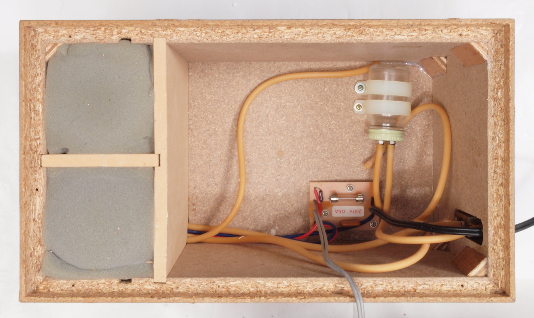 C35. 修理中 接着材が劣化した木箱、下後左から見る。圧縮板にボンドを塗って固めている。