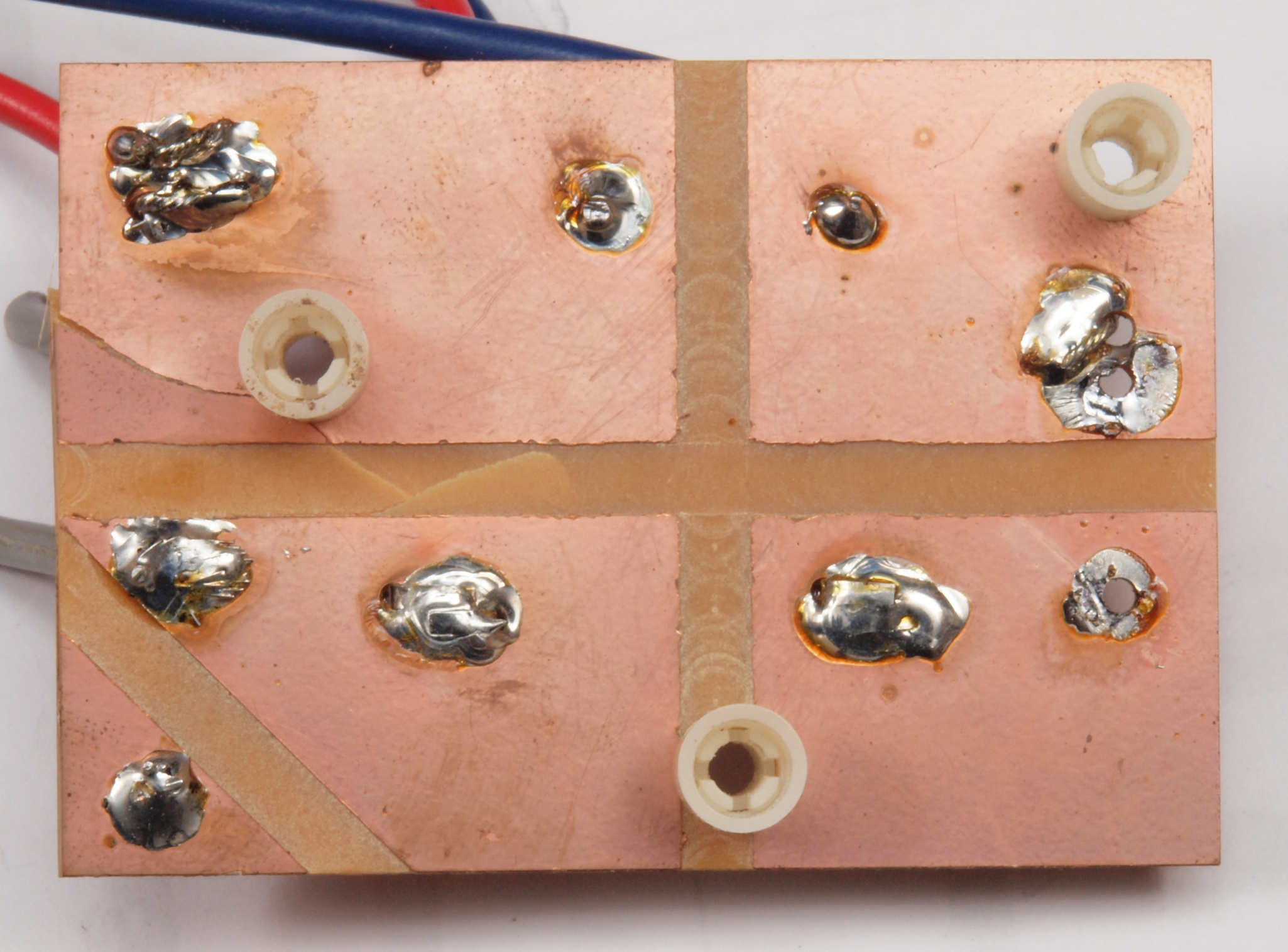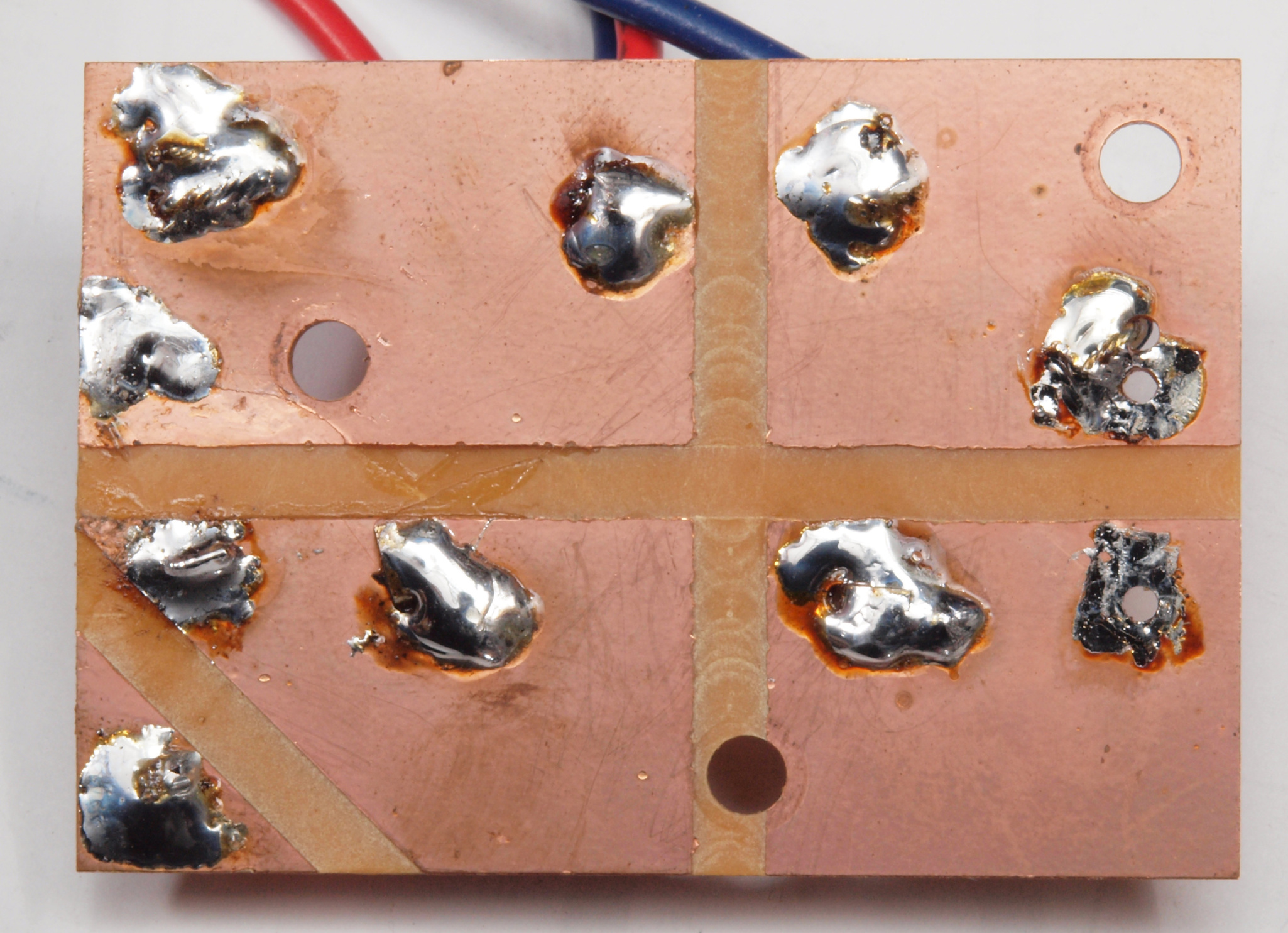 CB5. 完成ヒューズ基板裏。 余分なフラックスを落として、コート液を塗る。