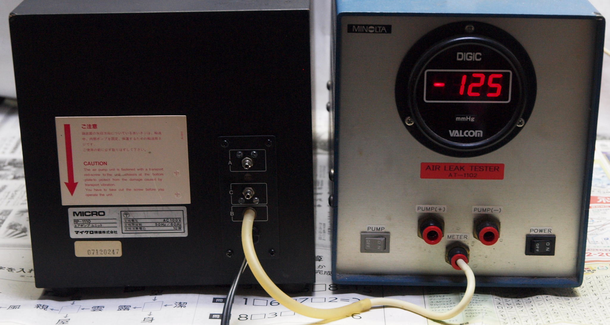 A51. 点検中  ポンプ吐き出しの圧力測定。SX−8000Uのステンレスタンテーブルステンレス製28kgなので、140mmHg以上欲しい。