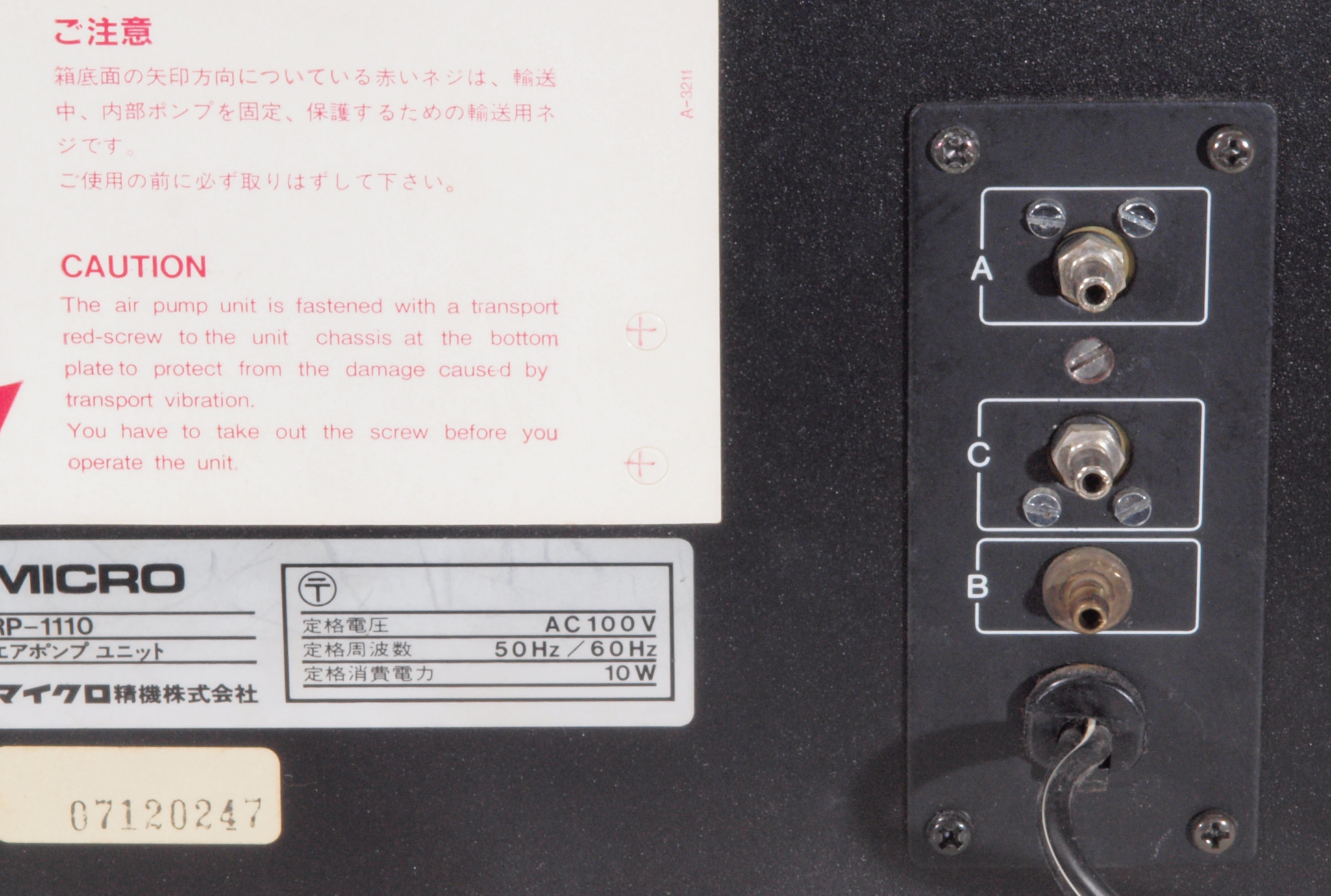 A132. RP−1110点検中、 後から、電源入り口、吐出口見る。