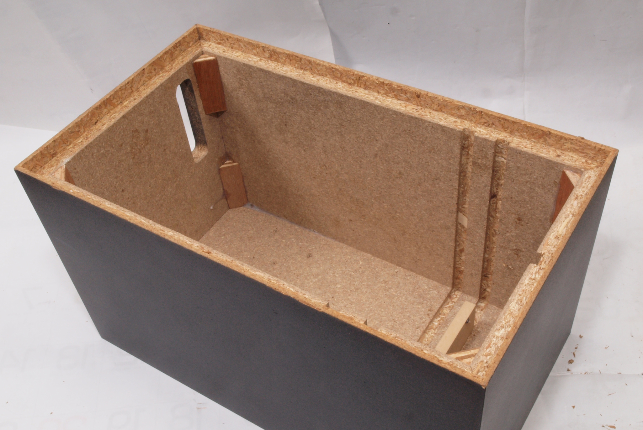 C33. 修理後 接着材が劣化した木箱、下前右から見る。 さらに、塗装する。