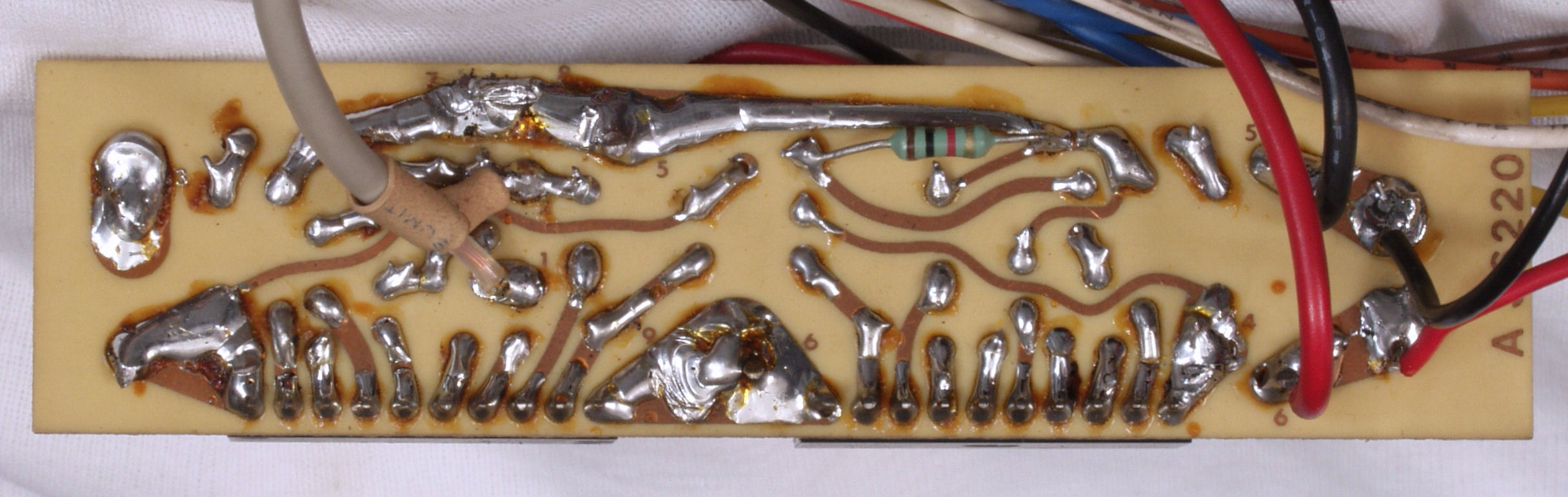 | C15. 洗浄後 電源部整流基板裏。余分なフラックスを落とす。 |