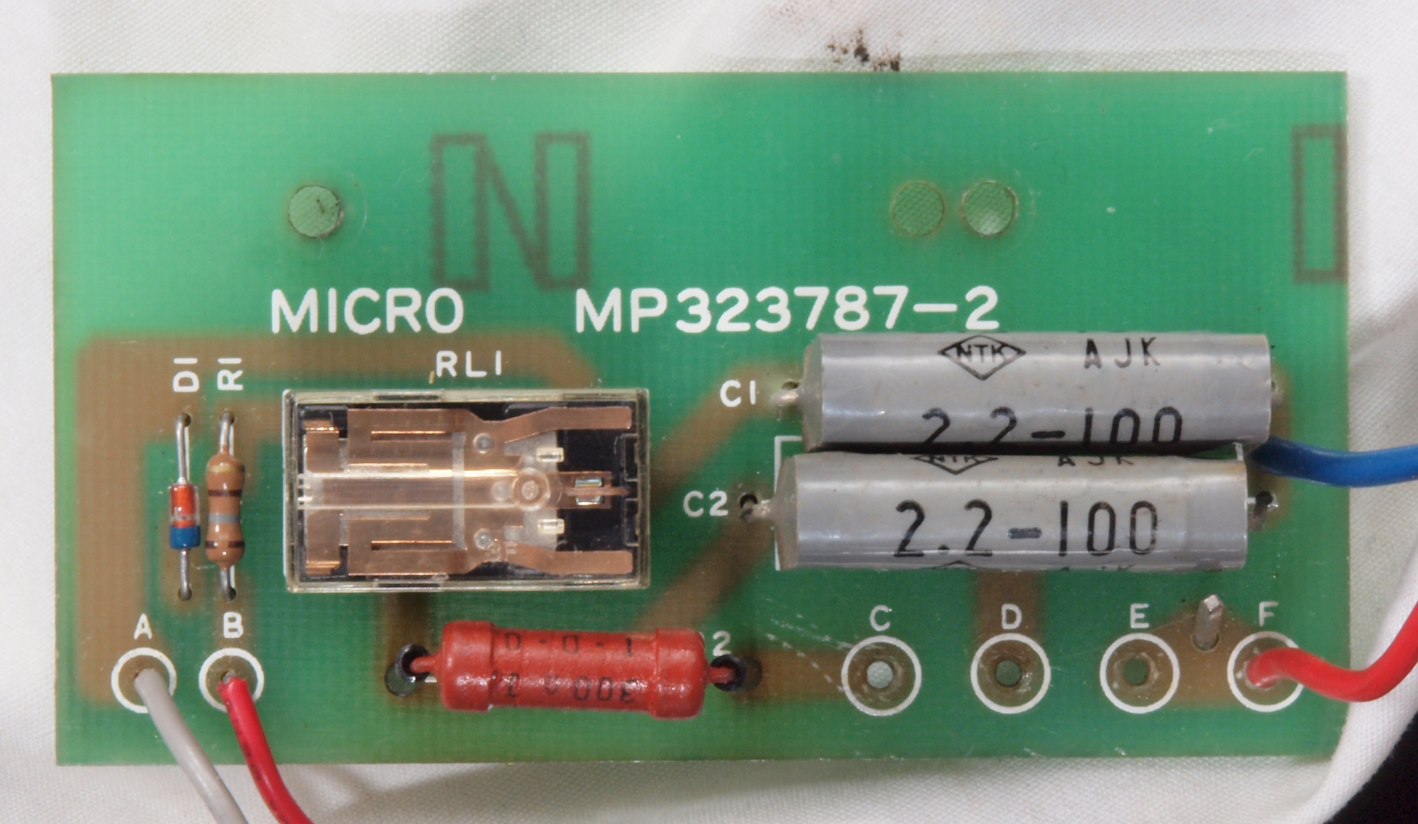 | C32. 修理後 モーター33/45回転切換基板。 フイルムコンデンサー2個、リレー1個交換。 | ||||||||||||||||||||||||||||||||||||||||||||||