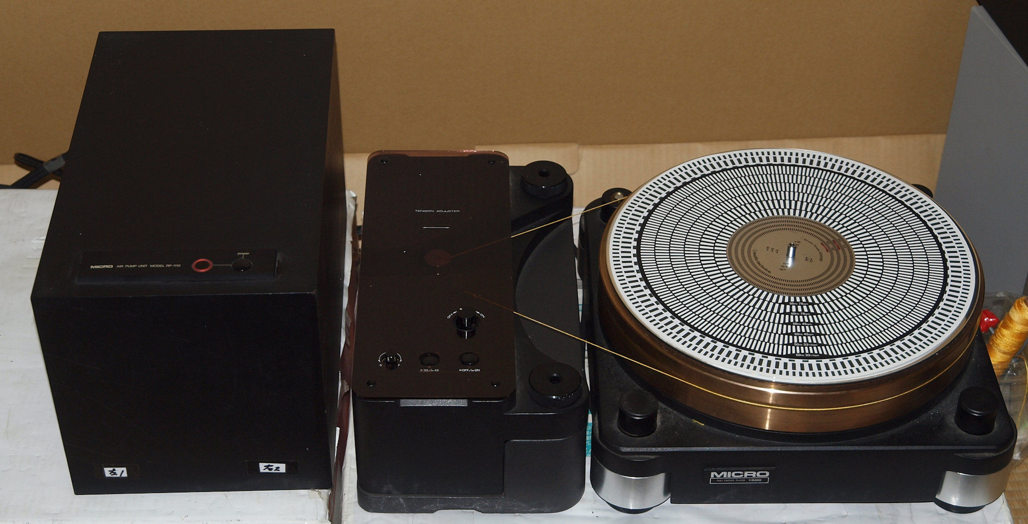 | F. RY−1500D調整・測定。 画像をクリックすると、大きく(横幅2050ドット)表示されます。 F1. ターンテーブル浮上圧力。 |
