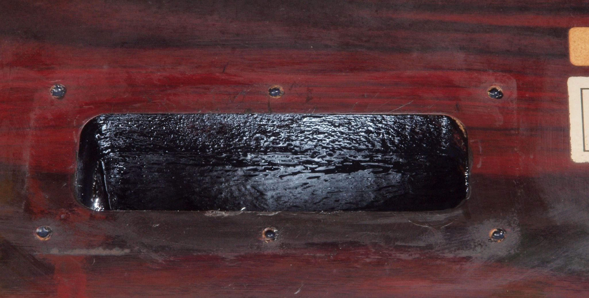 | W7C. 修理後 下蓋のトランスカバー取り付穴、反対側。 乾燥後さらにペンキを塗る。 | ||||||||||||||||||||||||