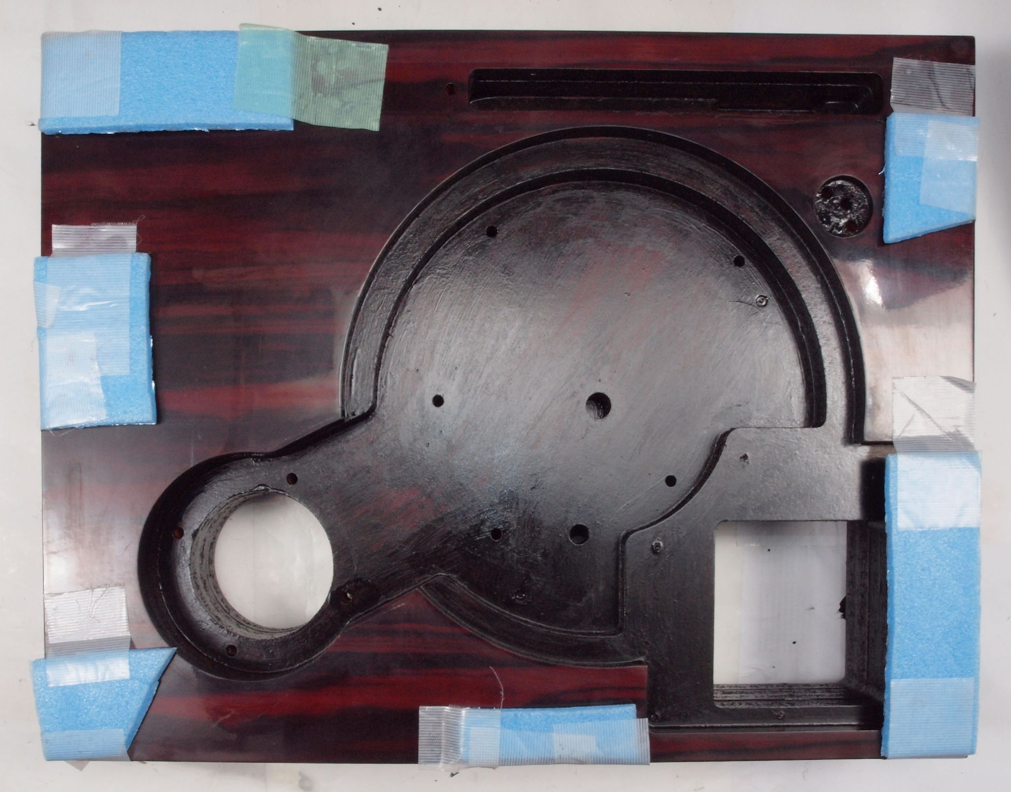 | W. 下蓋及び本体木部 修理状況。 画像をクリックすると、大きく(横幅2050ドット)表示されます。 W1. 修理前 モーター、基板、アーム架台を取り本体上から。 |