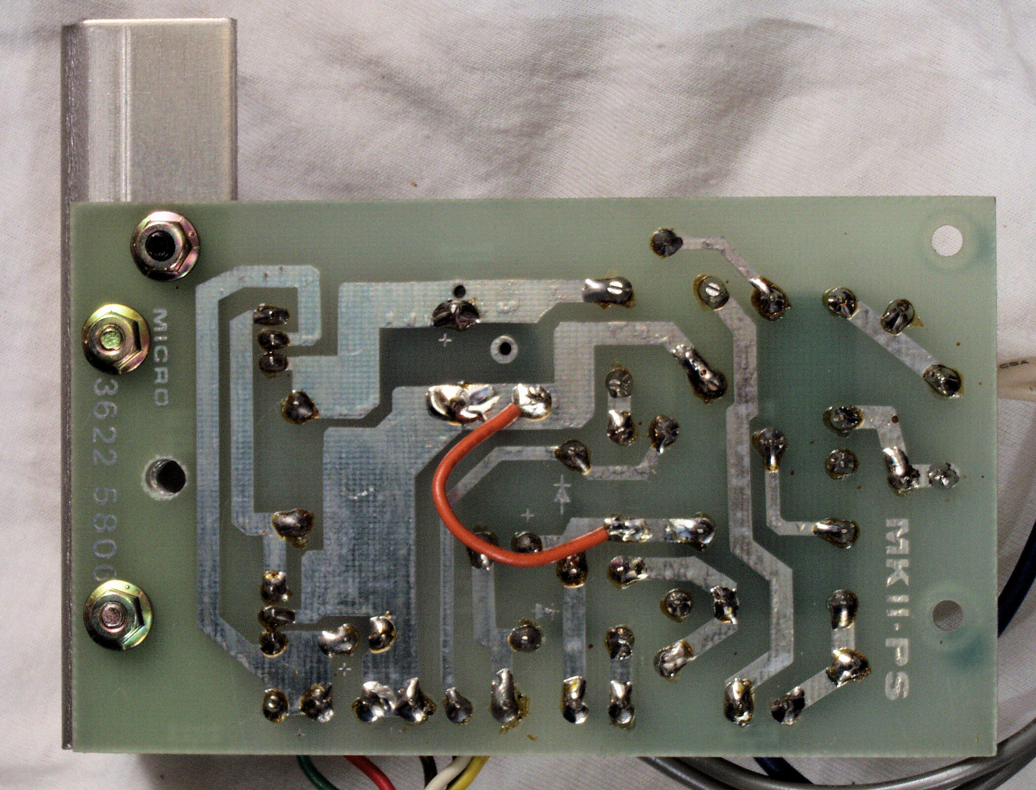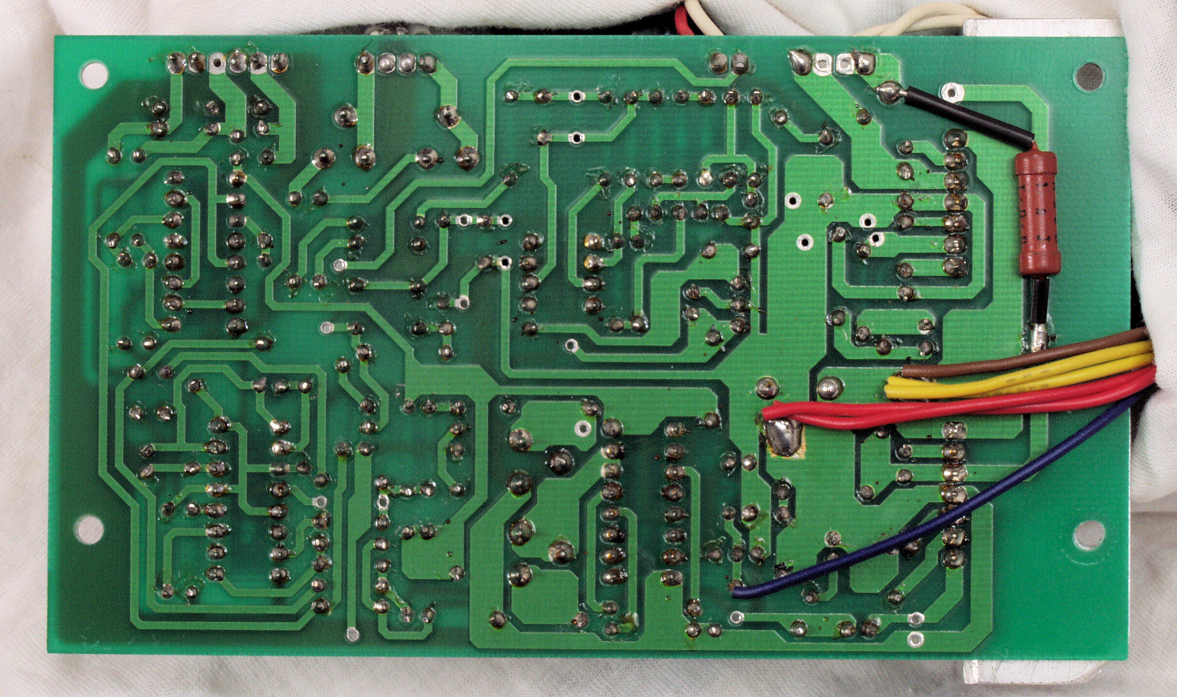 | C25. 完成RY−5500Uモーター部コントロール基板裏。余分なフラックスを落として、コート液を塗る。 | ||||||||||||||||||||||||||||||||||||||||||||||||||||||||||||||||||||||||||||||||||||