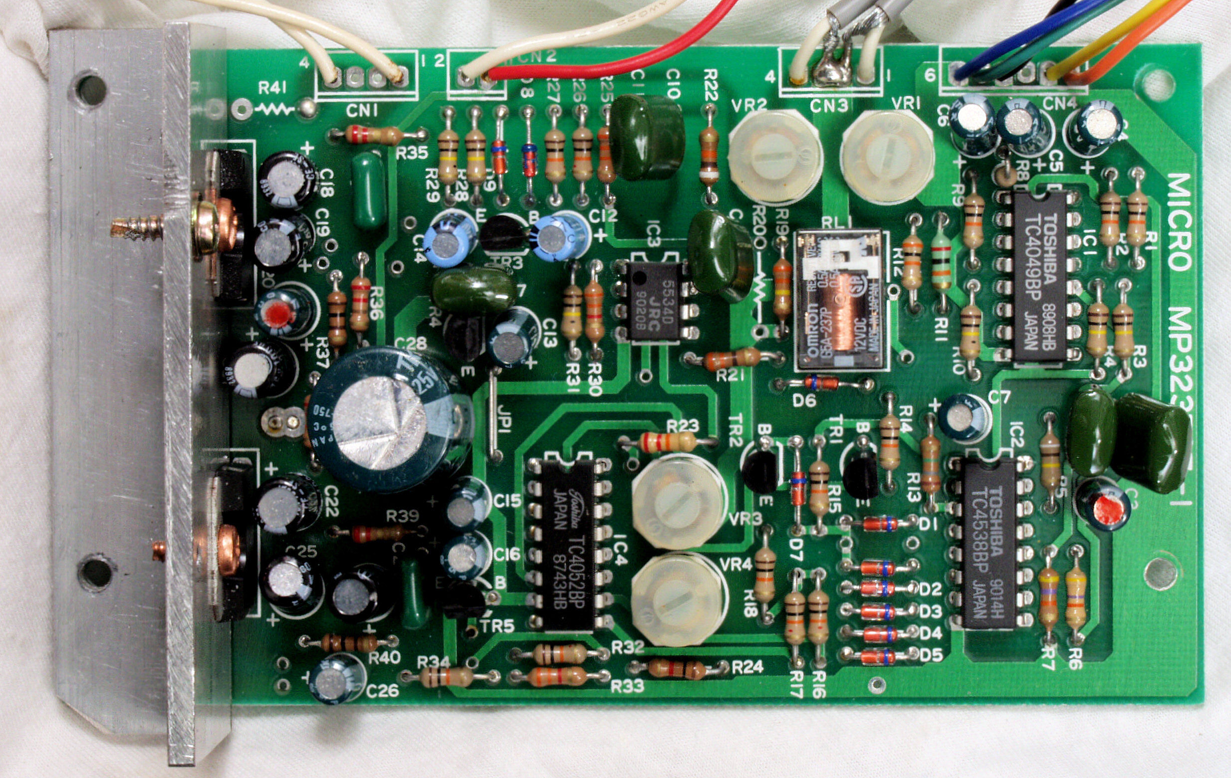 | C22. 修理後 RY−5500Uモーター部コントロール基板 半固定VR4個、電解コンデンサー19個、フイルムコンデンサー5個交換 |