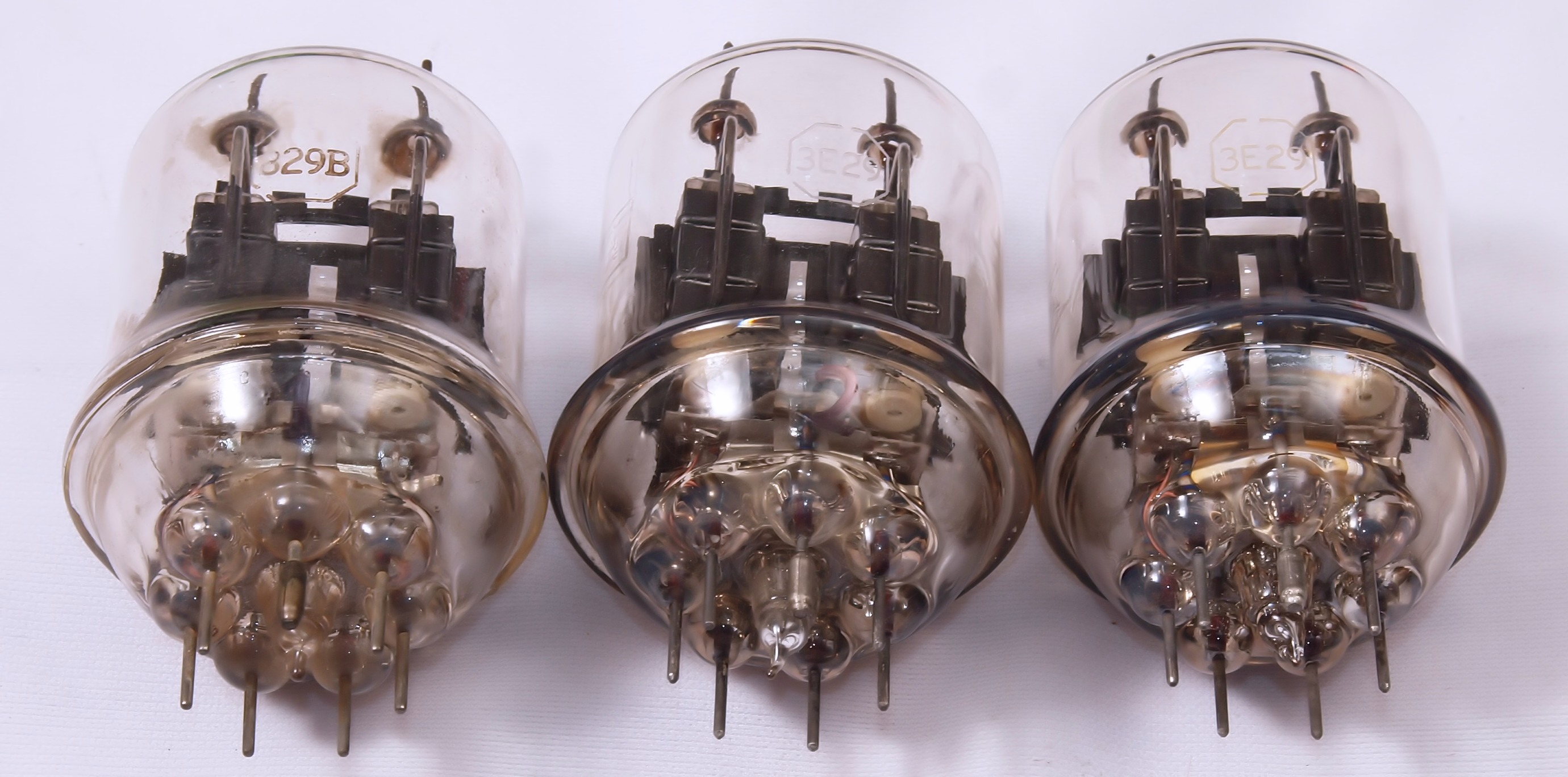 | 左から、1本目(829B)、 2本目(3E29)、3本目(3E29)、全てRCA製品。 |
