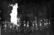 恒例の寮長の池での清身 玄関前で一休み中の御輿