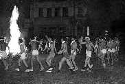市内本町を練り歩く御輿、上級生が先頭になって、誘導するのは寮役員