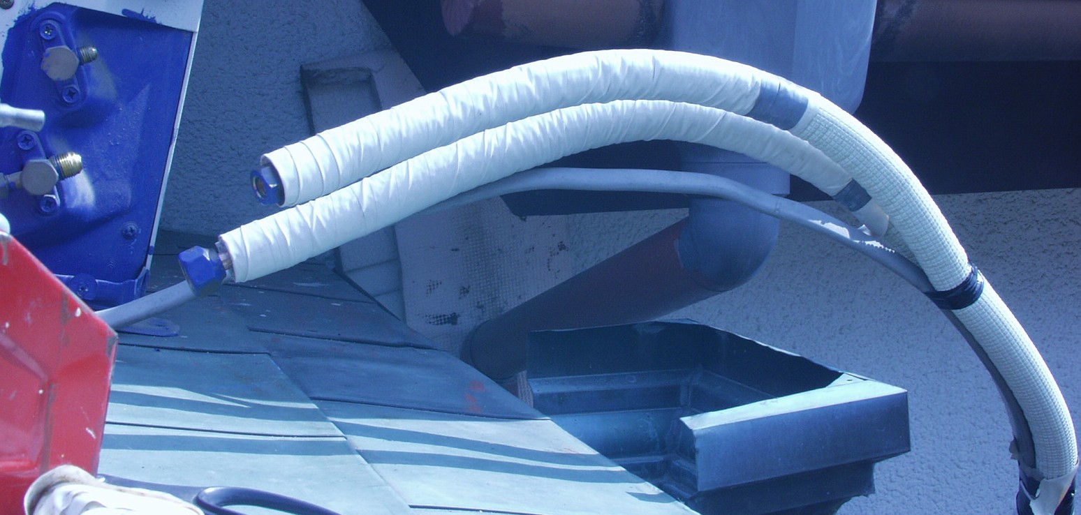 22.室外機からの配管のジョイント部分。 タービン・オイルを塗り、しっかりと締める