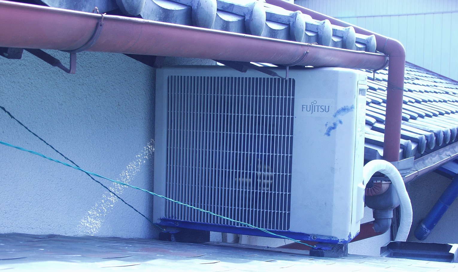 37.室外機側の取付 西側から見る 風通しが良いので暖房運転も期待出来る