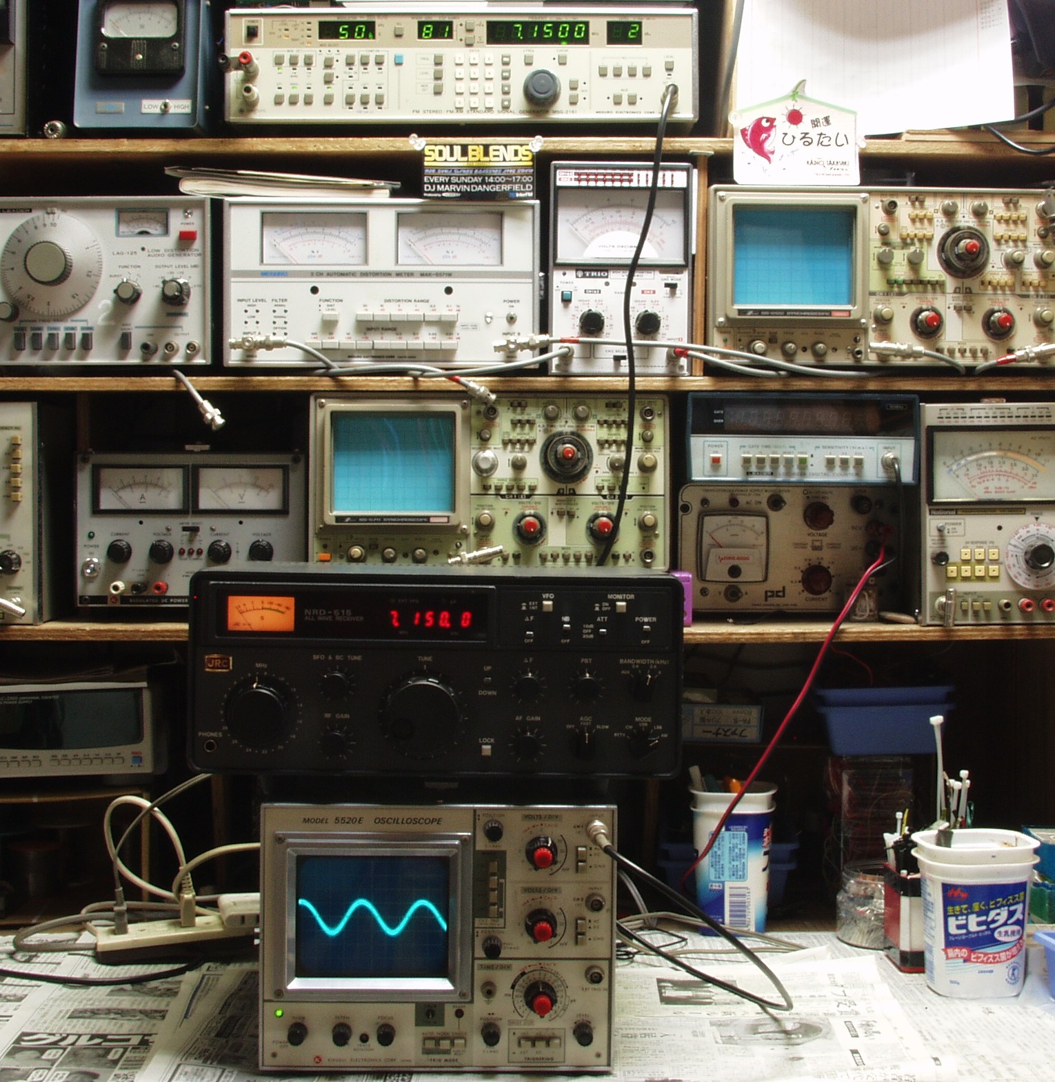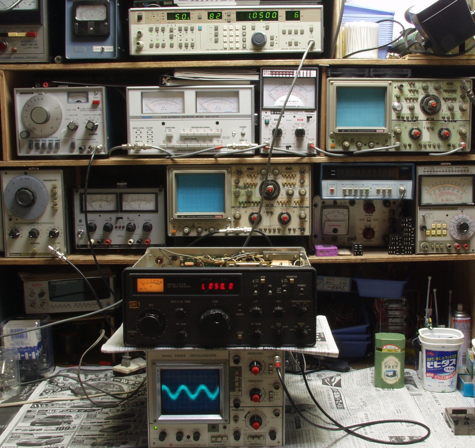 E−1. 測定・調整 上のSGより400HZAM50%変調の信号を受信し、ライン出力をオシロで観測、信号強度=2μV |
