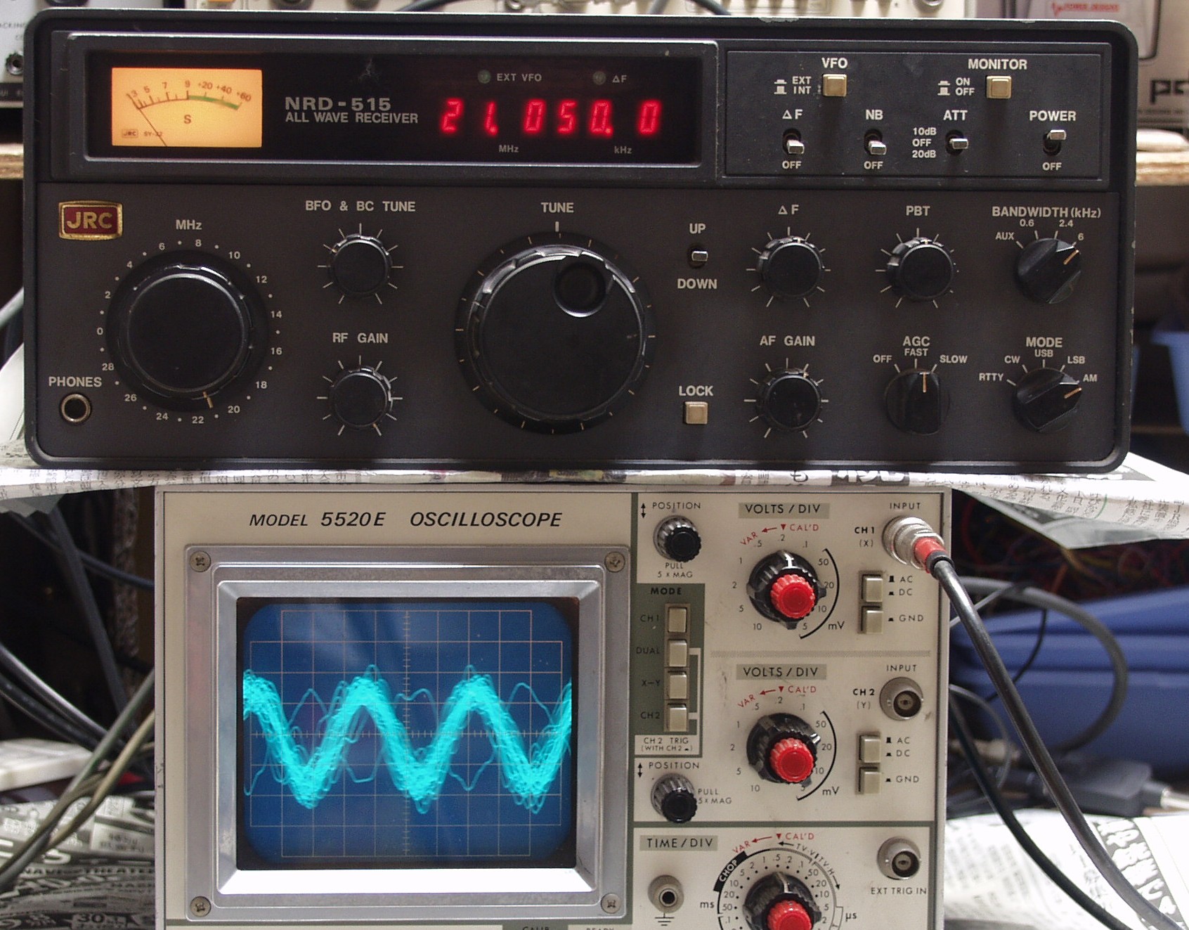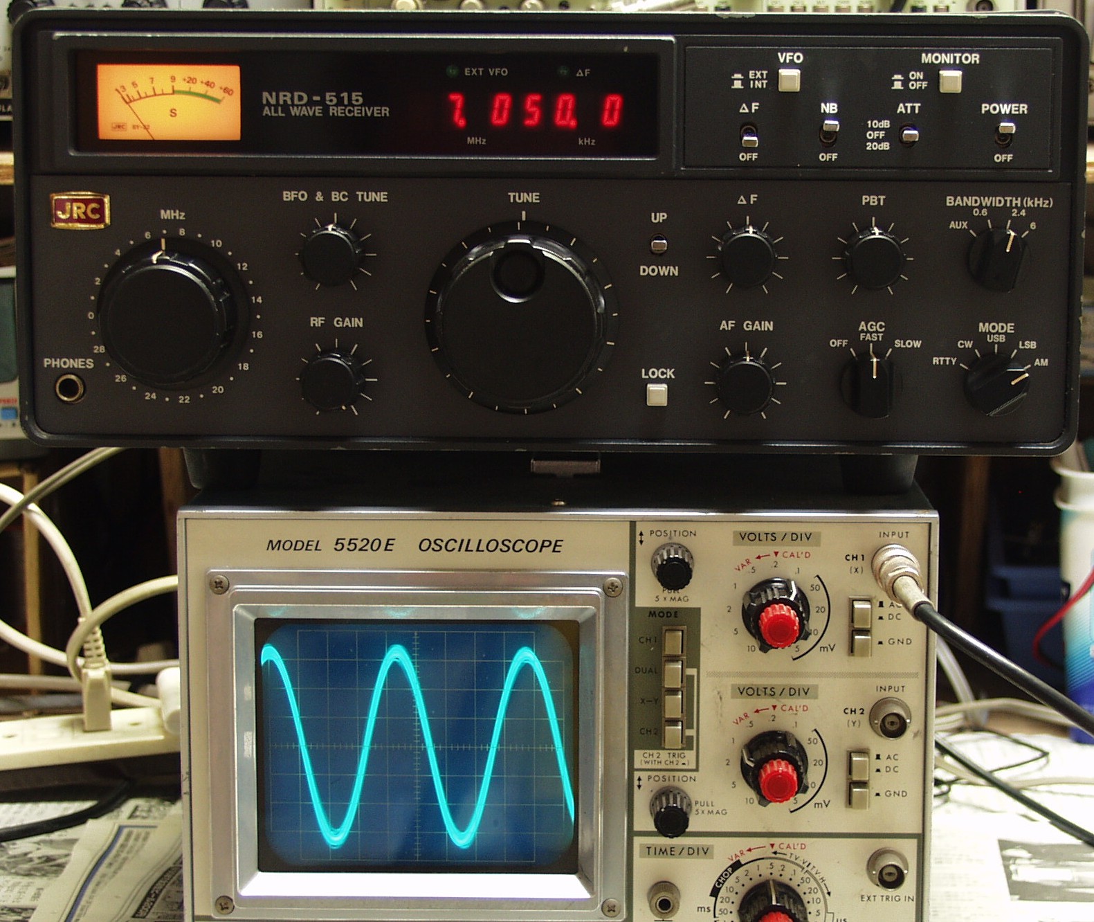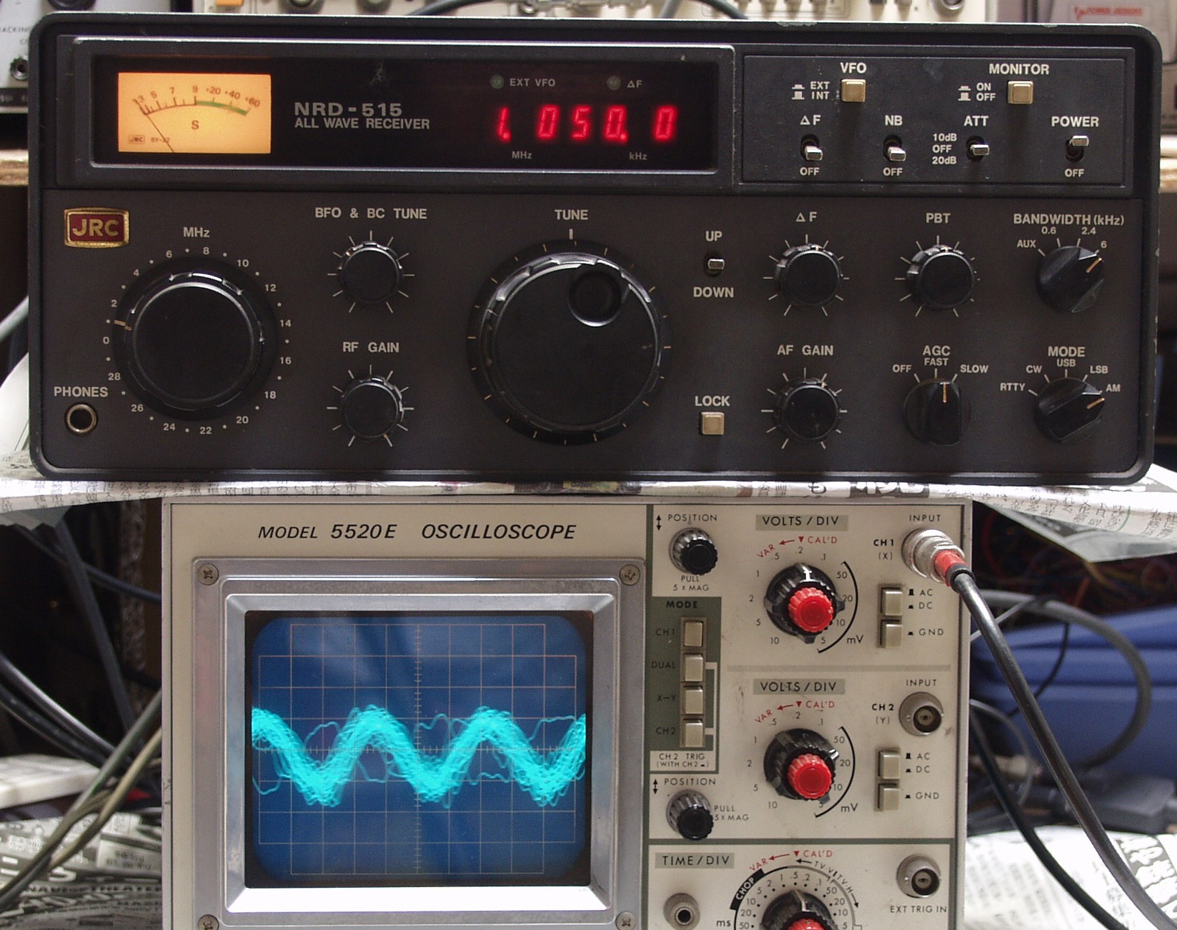 A−2. 修理前の感度測定 上のSGより400HZAM50%変調の信号を受信し、ライン出力をオシロで観測、信号強度=2μV