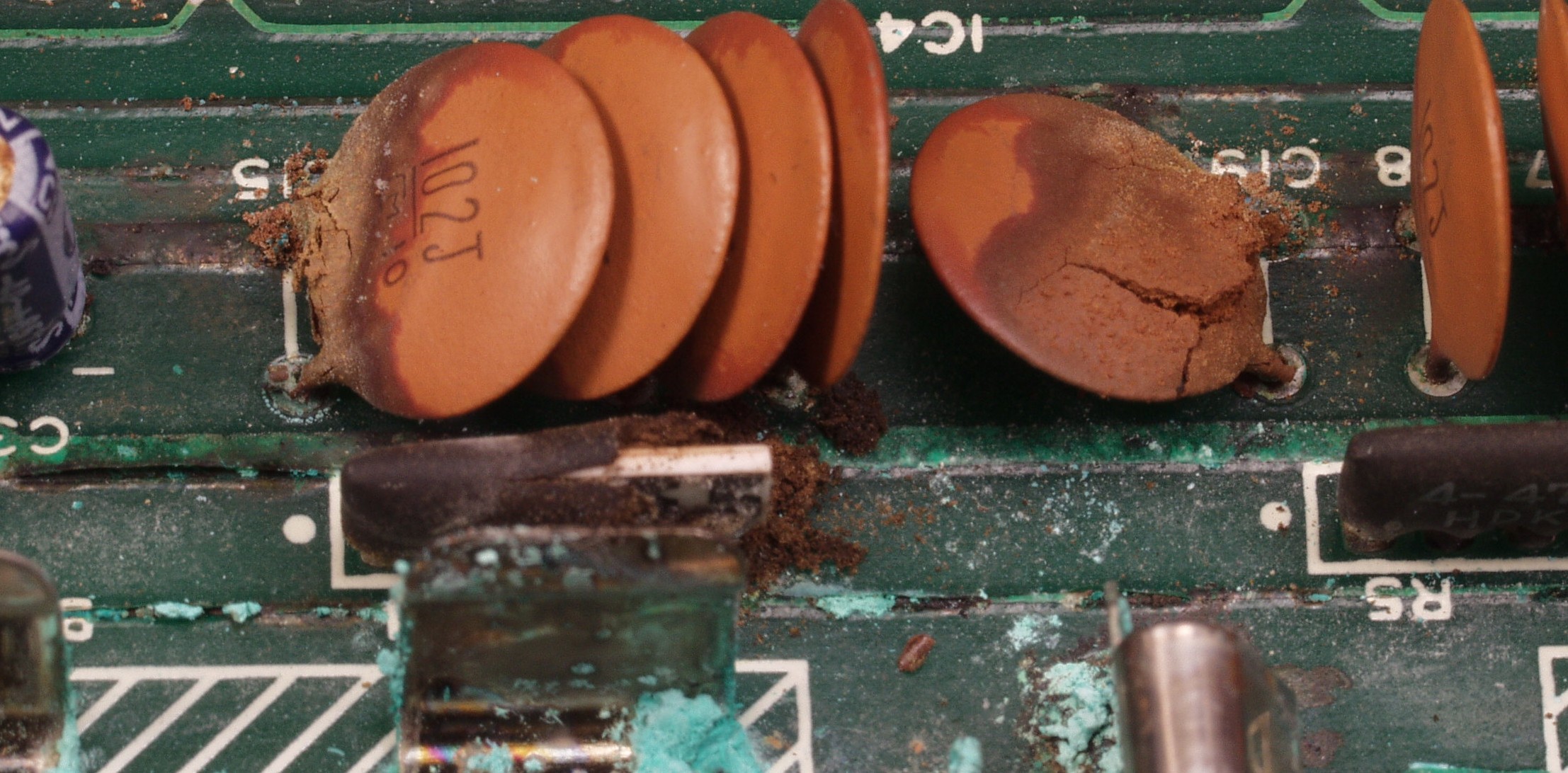 | A−4. NHD−518 セラミックコンデンサーや集合抵抗も腐食 |