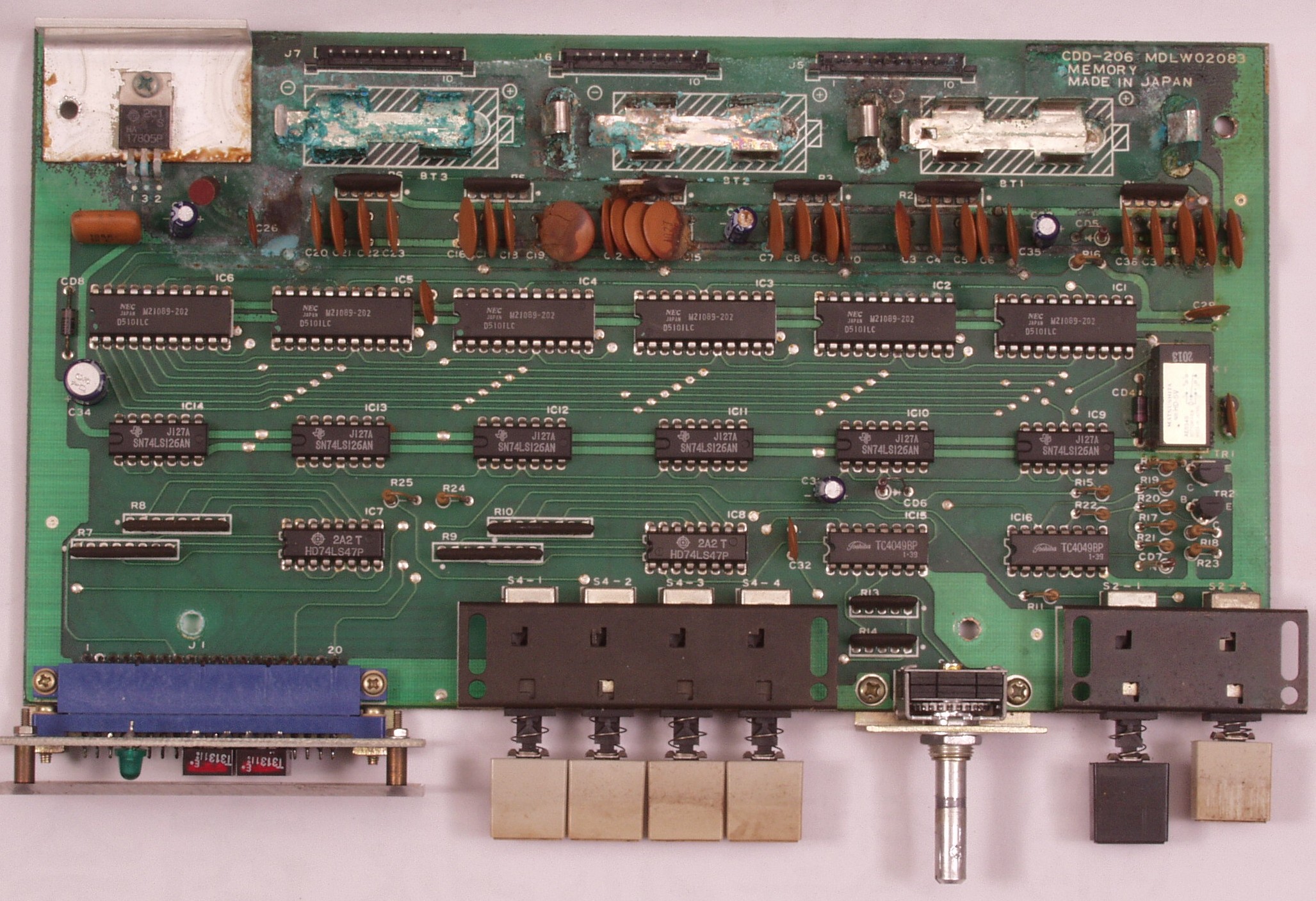 | C−6B. 修理中 シンセサイザー基板、シールドを外した所 |