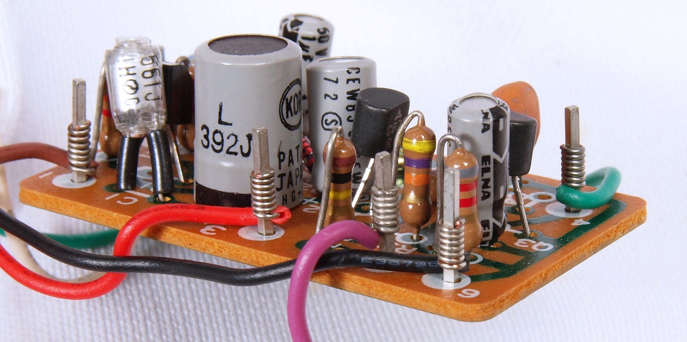 | C52. 修理後 デイスクリート基板 電解コンデンサー13個、半固定VR1個交換 | ||||||||||||||||||||||||||||||||||||||||||||