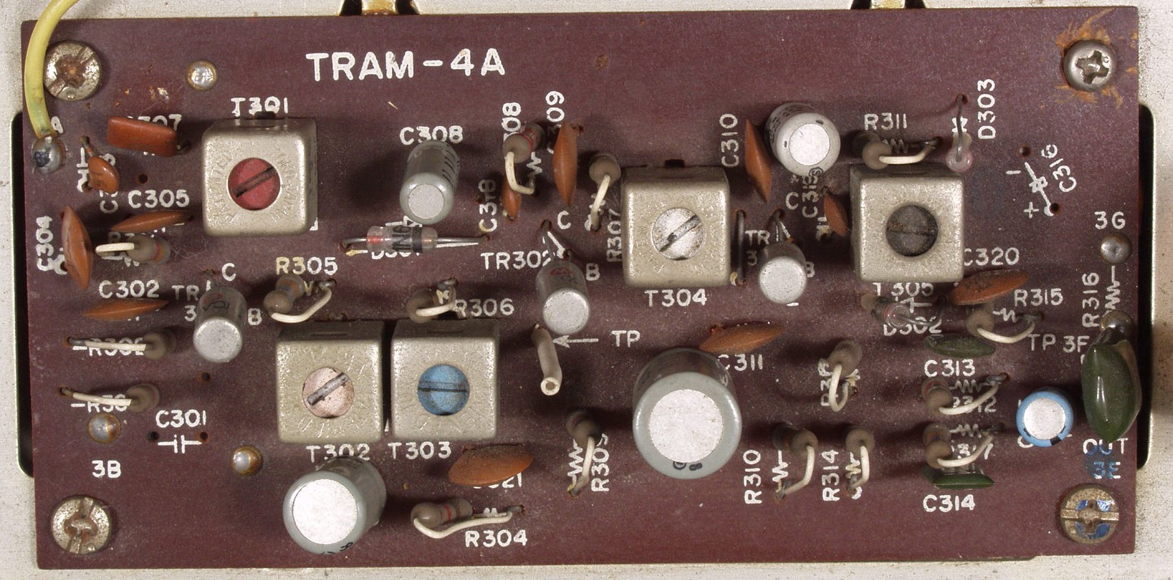 C2B. 修理後 FM−IFー基盤 電解コンデンサー4個交換、半固定VR2個、TR(トランジスタ−)2個交換