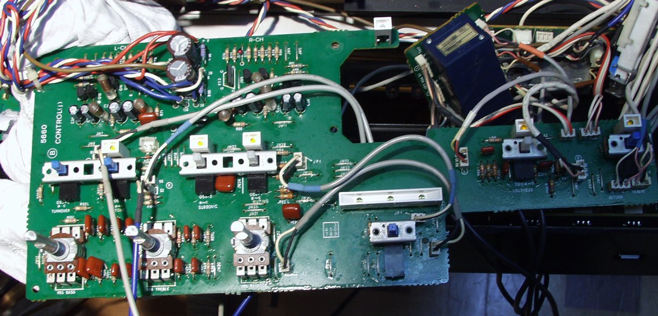 C2. 修理後 EQ基板 音が通る結合(カップリング)コンデンサーは、BPコンデンサーに交換したので2個→1個