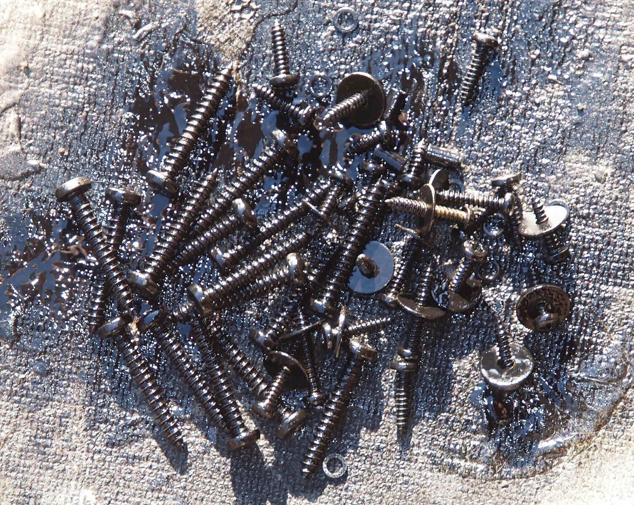 WD2. 修理中 下蓋等止めネジ、ラッカーを吹く。 乾燥後方向を変えて、さらに塗る。