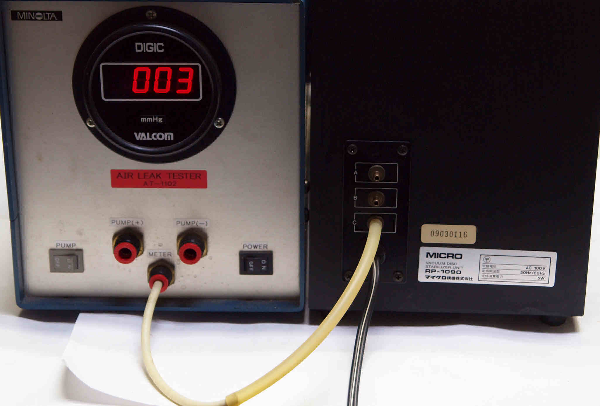 E2.  「B=吸い込」 の圧力測定。 Cより低いのは圧力調整バイパスが有る為。
