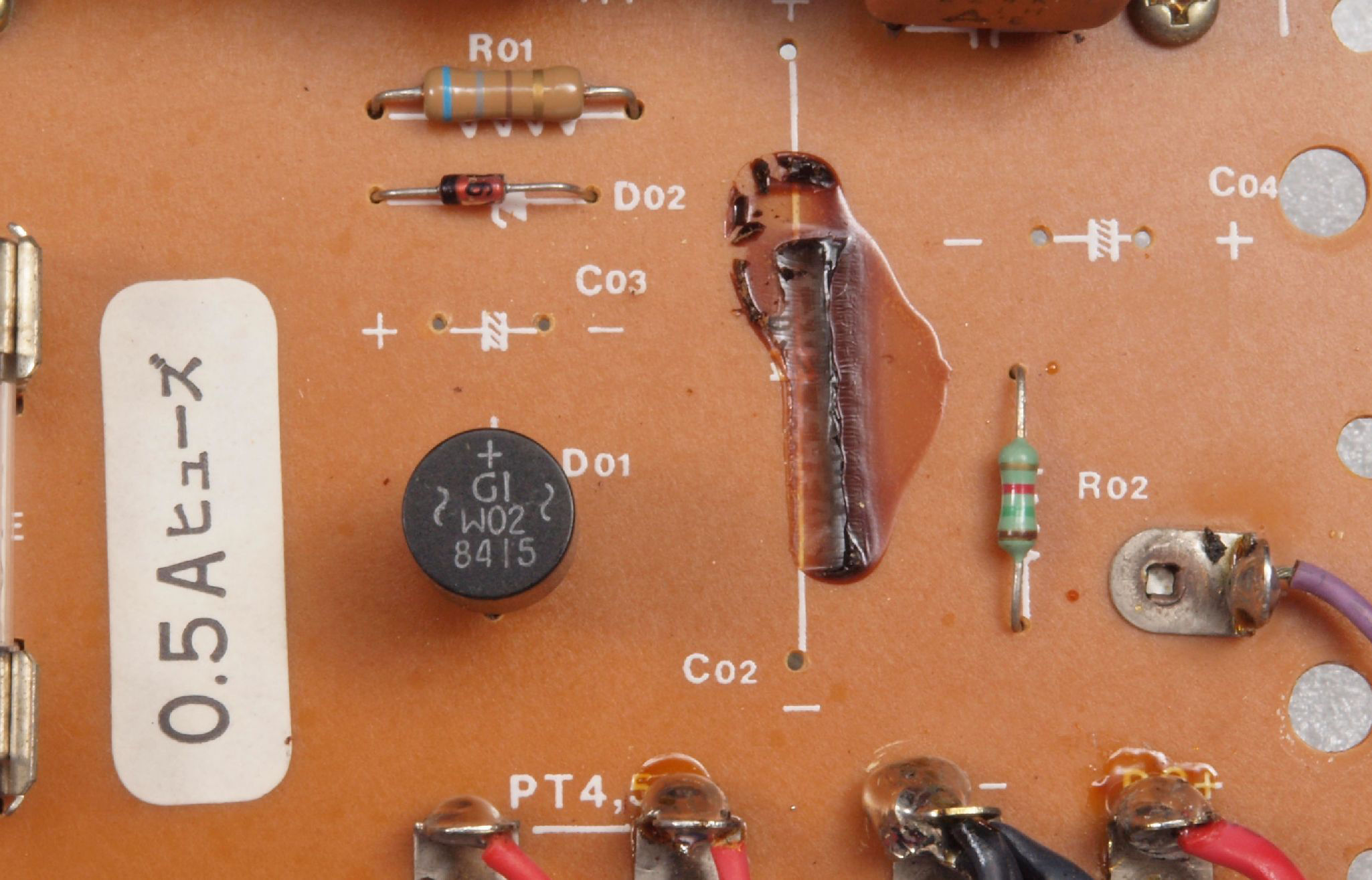 | C22. 修理中 電源・ヒューズ基板。 トルエン溶媒の接着剤。 | ||||||||||||||||||||