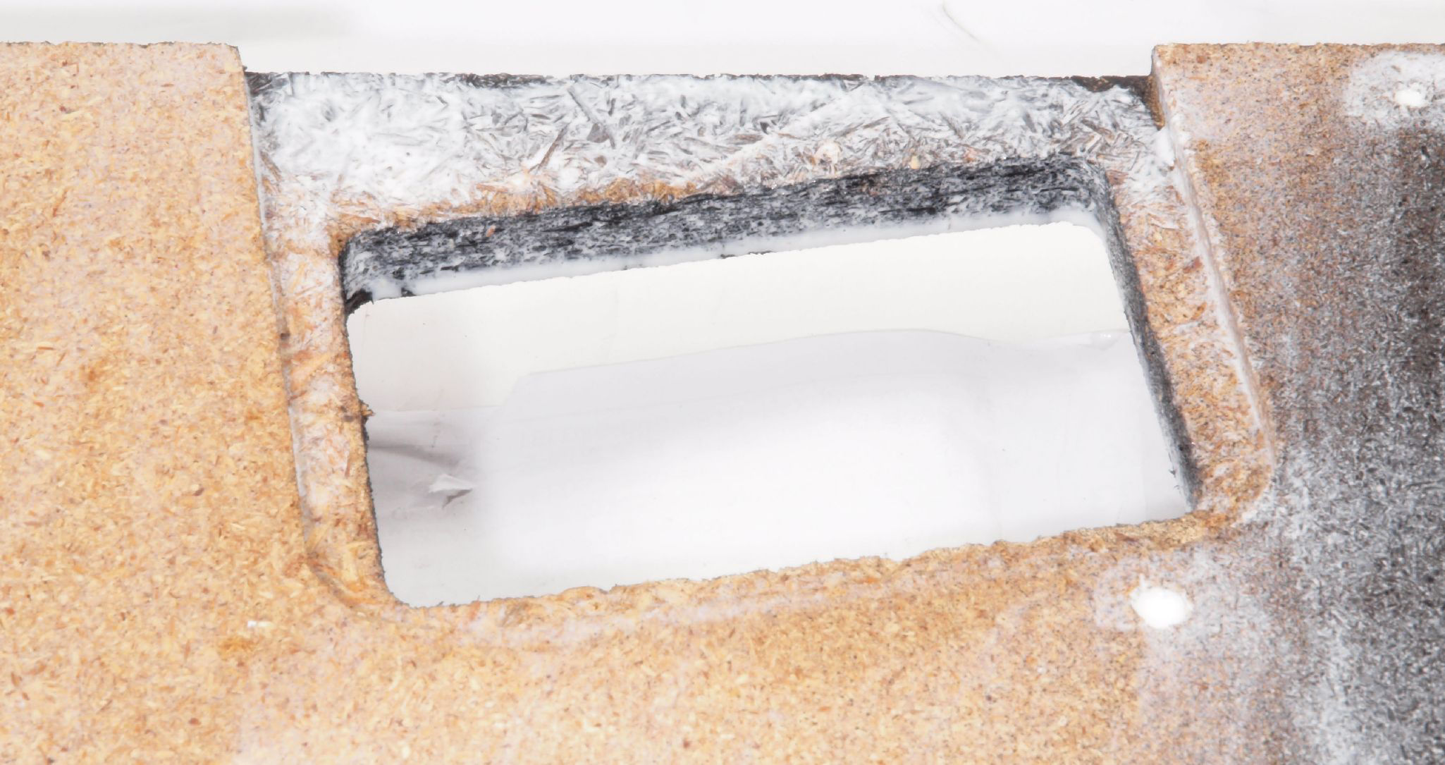 | W1E. 修理中 操作部取り付け穴。 水性木工ボンドを塗布する。 | ||||||||||||||||||||