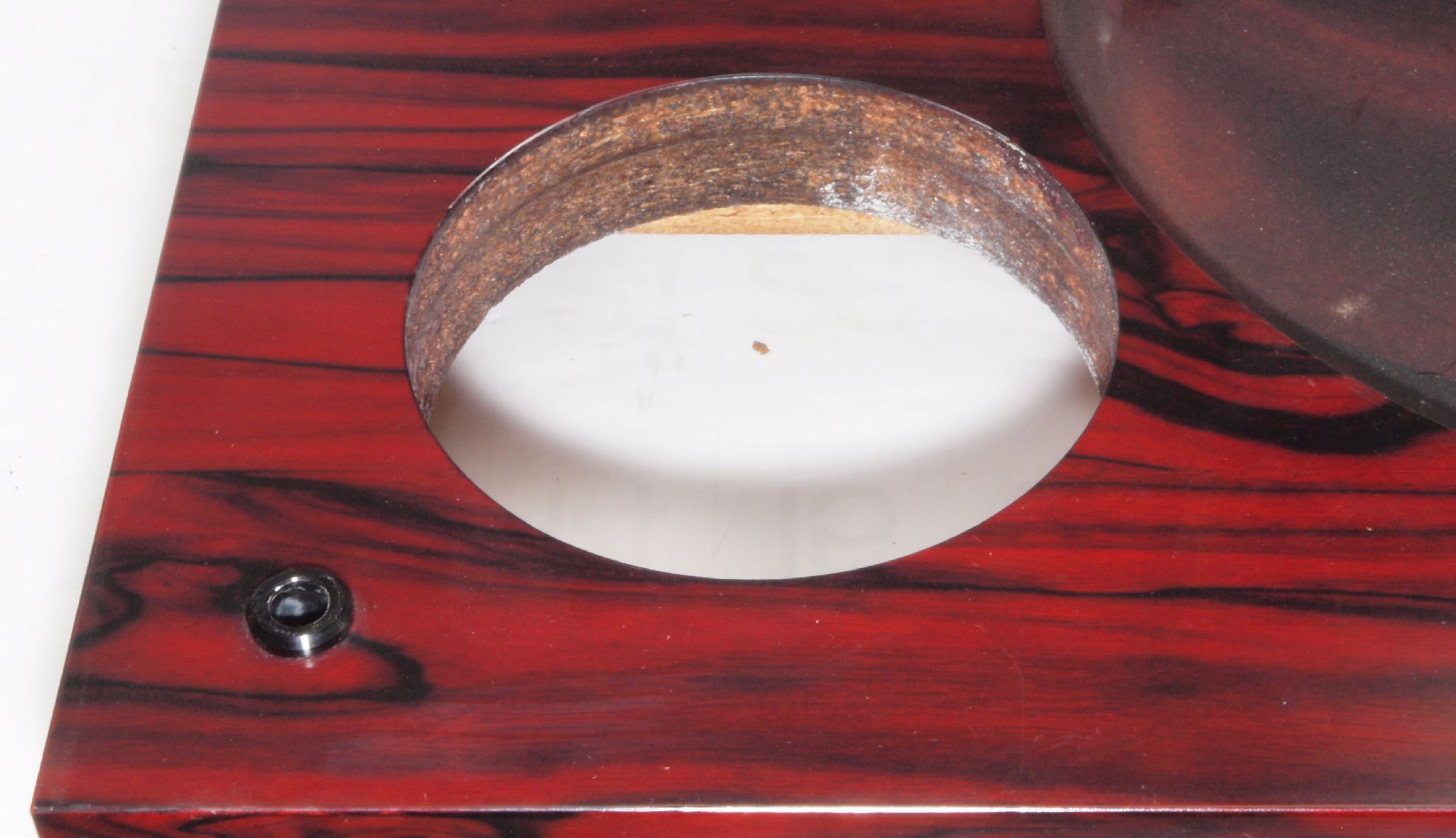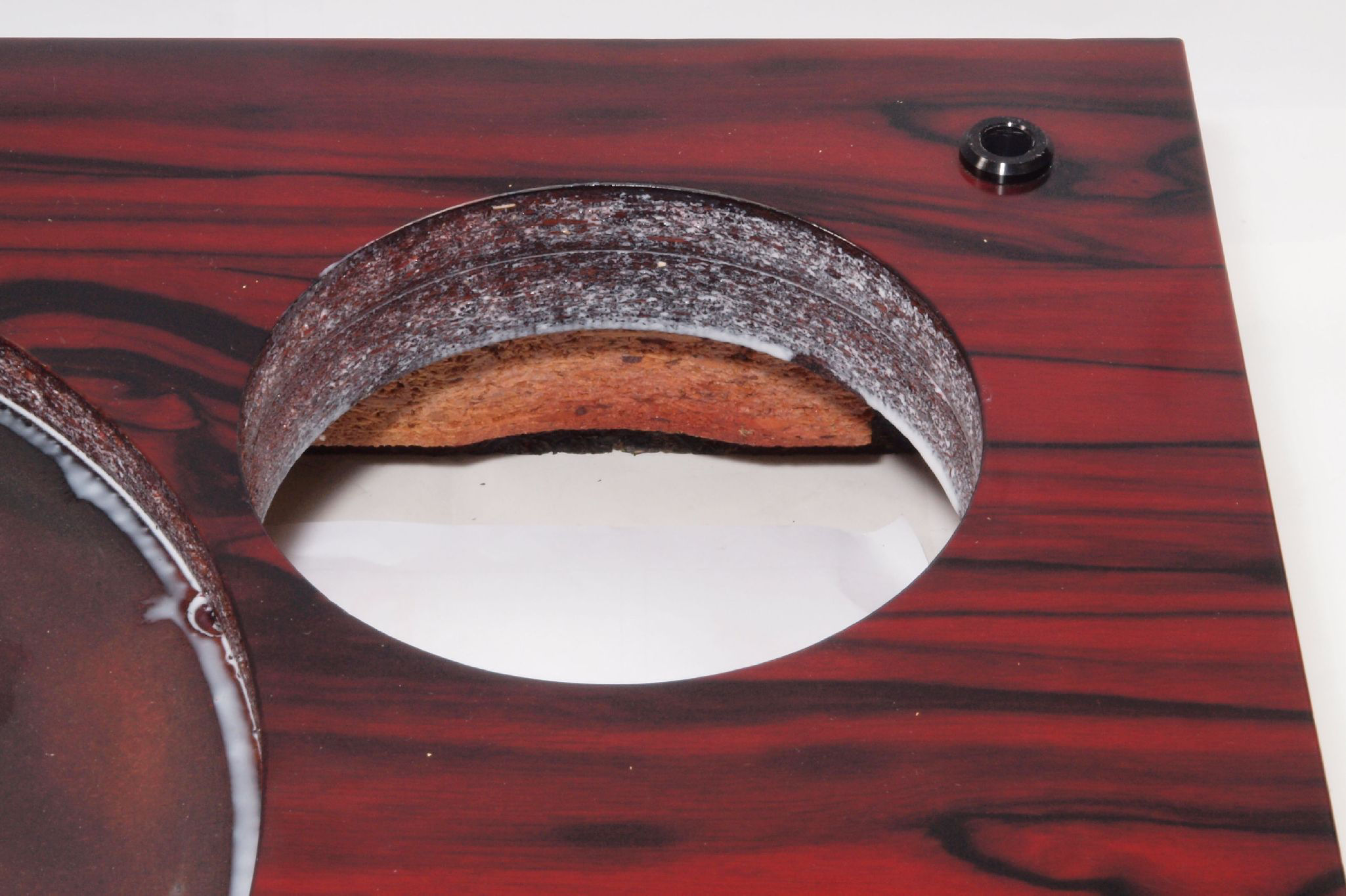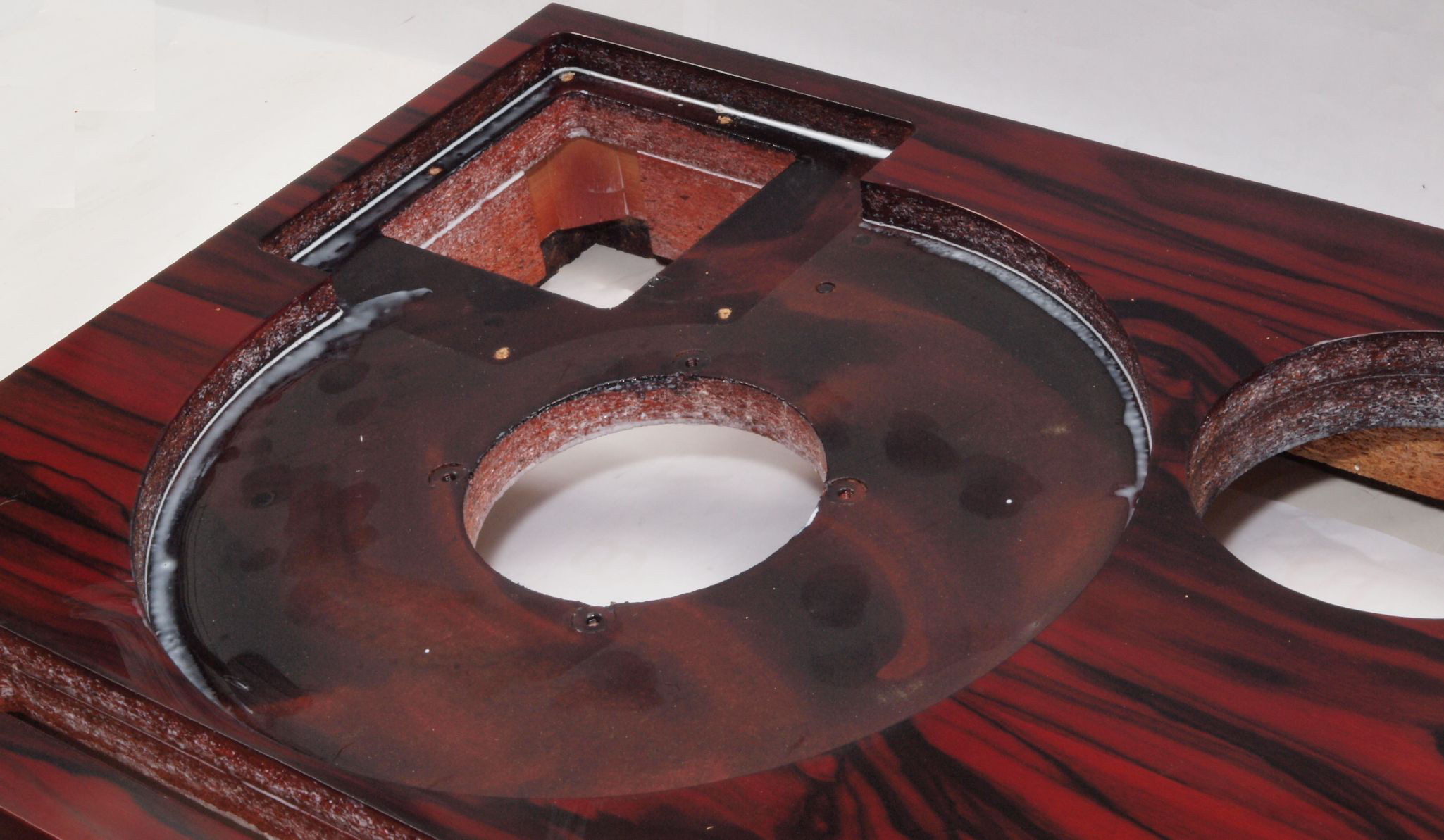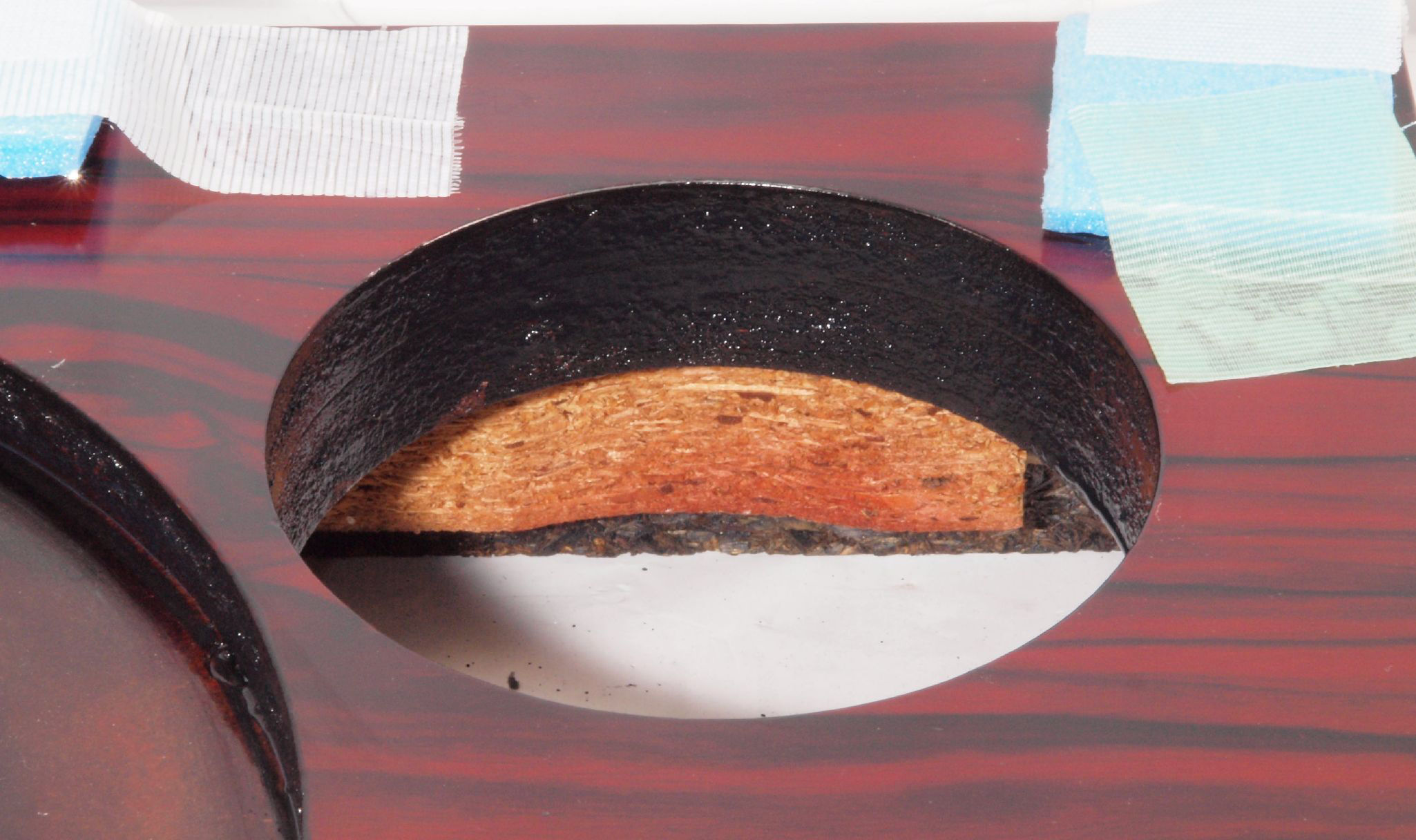 | W1B. 修理中 タンテーブル取り付け穴。 水性木工ボンドを塗布する。 | ||||||||||||||||||||