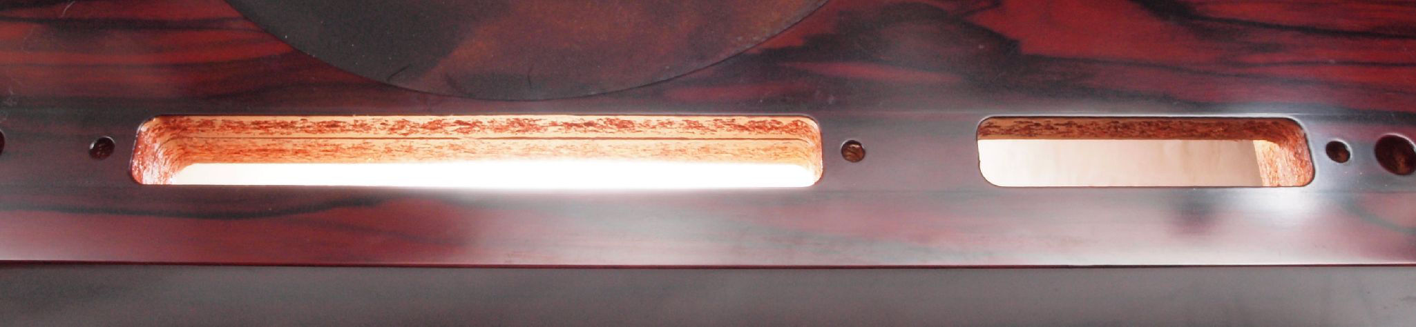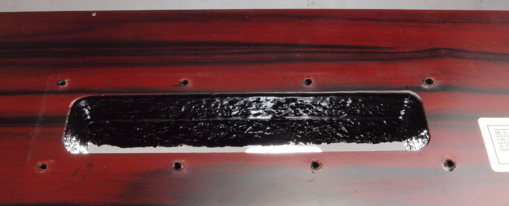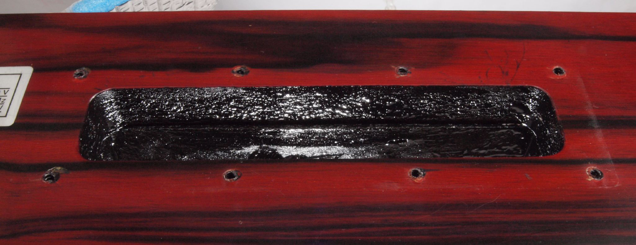 | W1C. 修理後 タンテーブル取り付け穴。 キズを消す為と割れを防ぐのに、塗装する。 | ||||||||||||||||||||