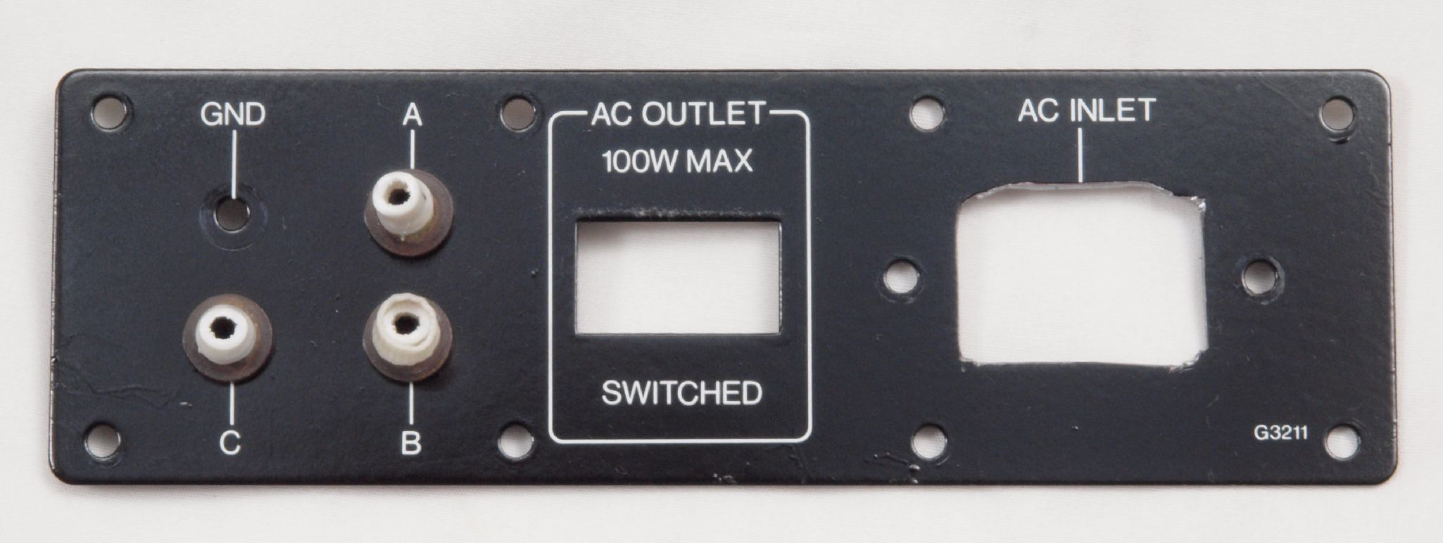 | A72. 点検中 電源コンセントパネル。 3Pインレットに交換可能。FURUTECH FI-10(R) ロジウムメッキ。 |