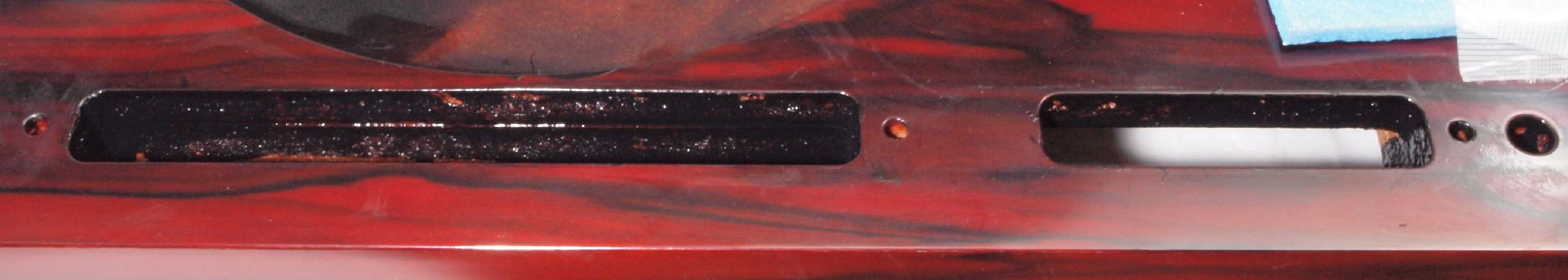 | W1I. 修理後 操作部取り付け穴。キズを消す為と割れを防ぐのに、塗装する。 | ||||||||||||||||||||
