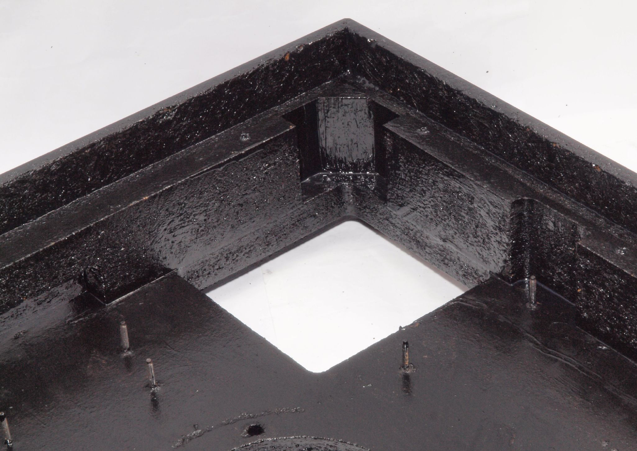 | W96. 修理中 底板裏側、アーム取り付け穴、反対側。さらに、キズを消す為と割れを防ぐのに、ペンキを塗る。 | ||||||||||||||||||||