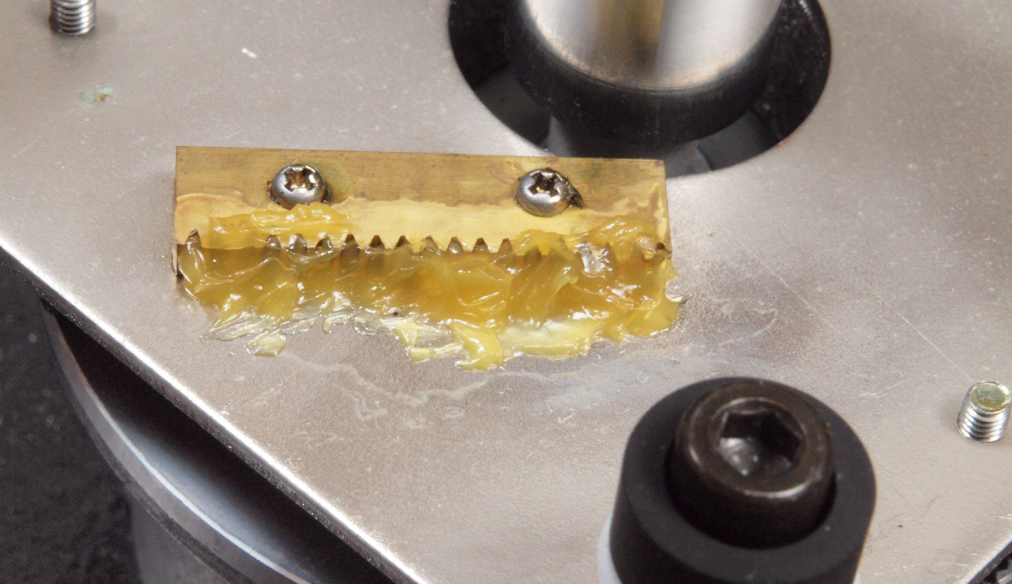 | C83. 修理後 モーター移動用ラック歯車。新しいグリスを塗布。 | ||||||||||||||||||||