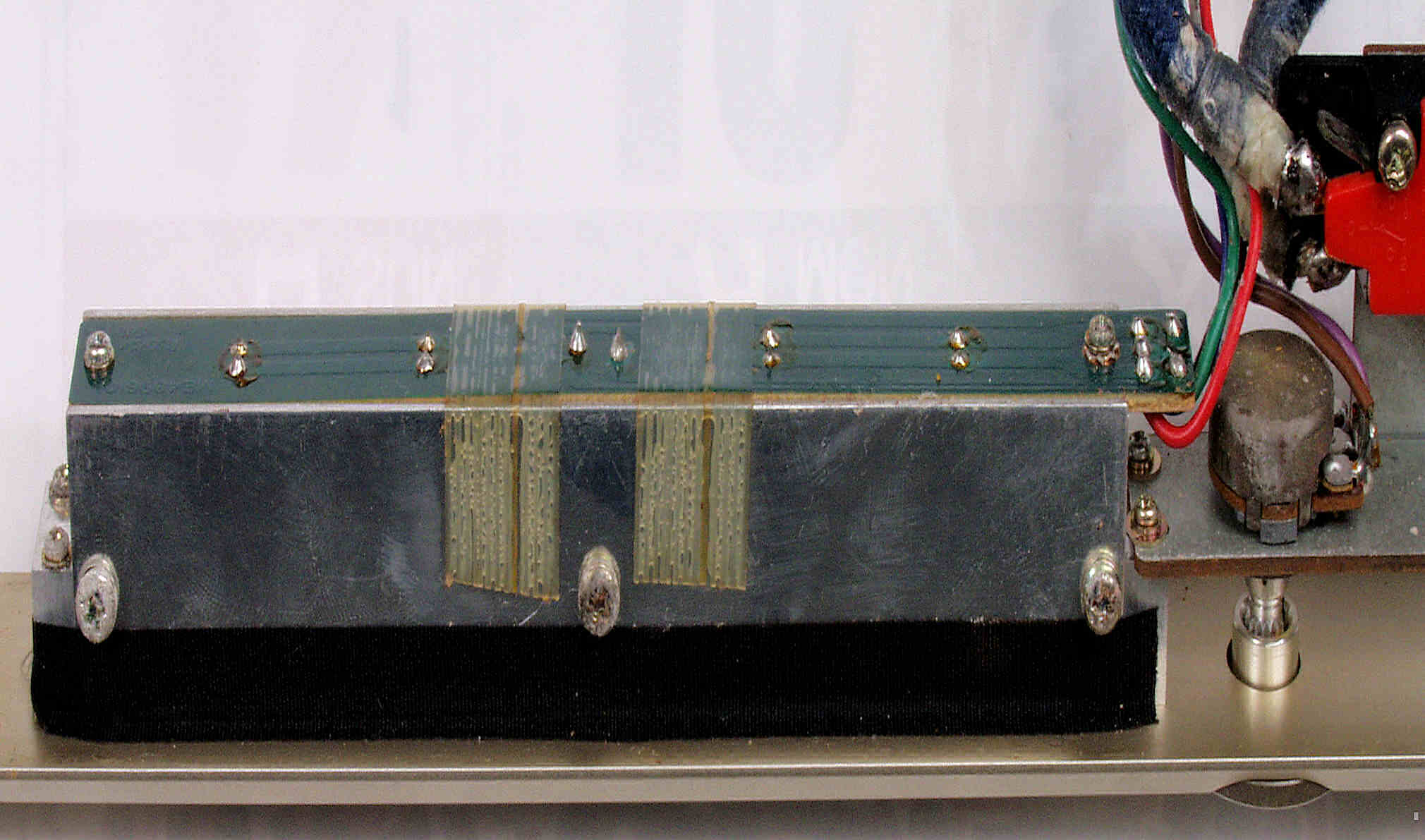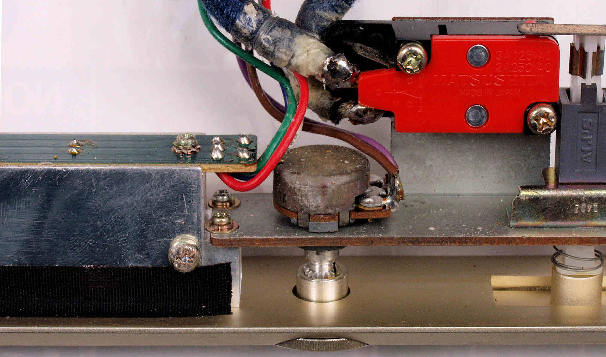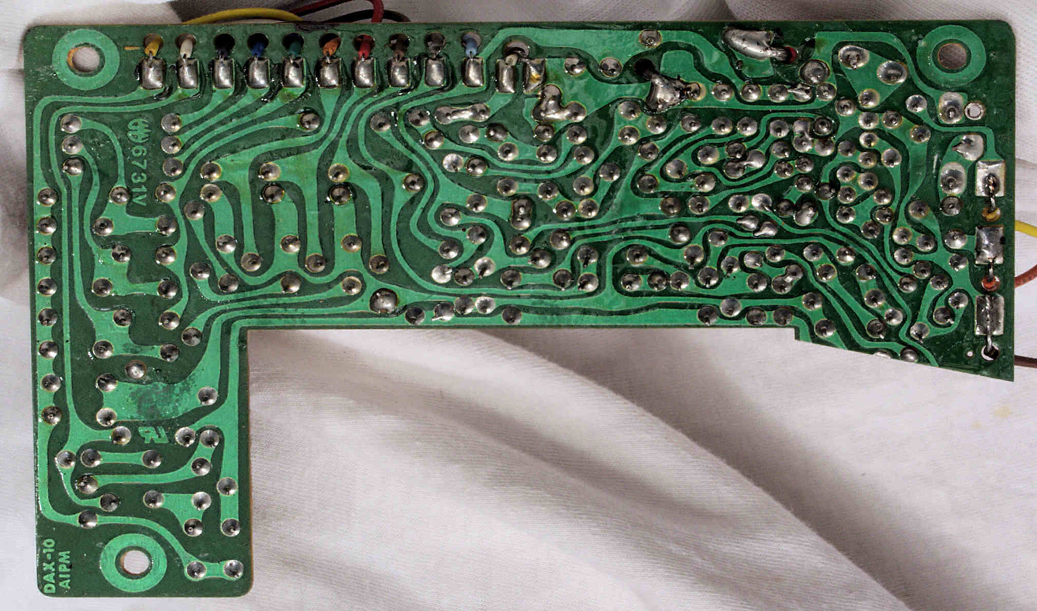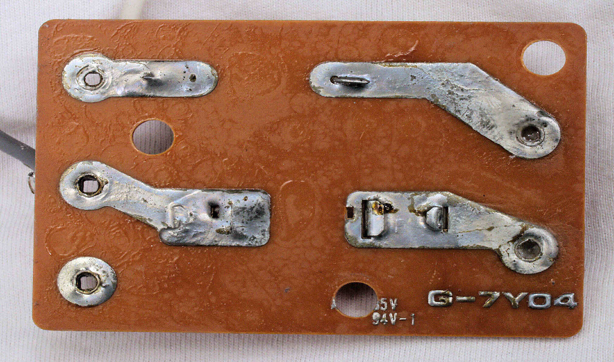 | C431. 修理前 フューズ基板裏、太い線交換よりも、鳩目の半田補正の方が効果ありでは? | ||||||||||||||||||||||||