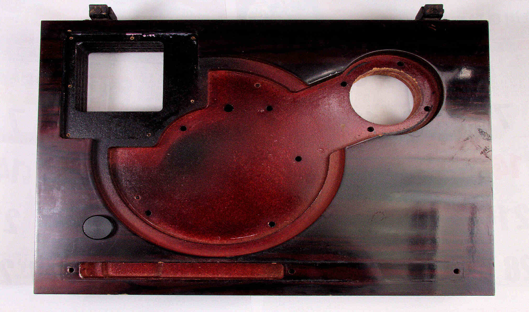 | M31. 修理中 装備を外した本体裏、1回目水性木工ボンドを塗布した後。 | ||||||||||||||||||||||||