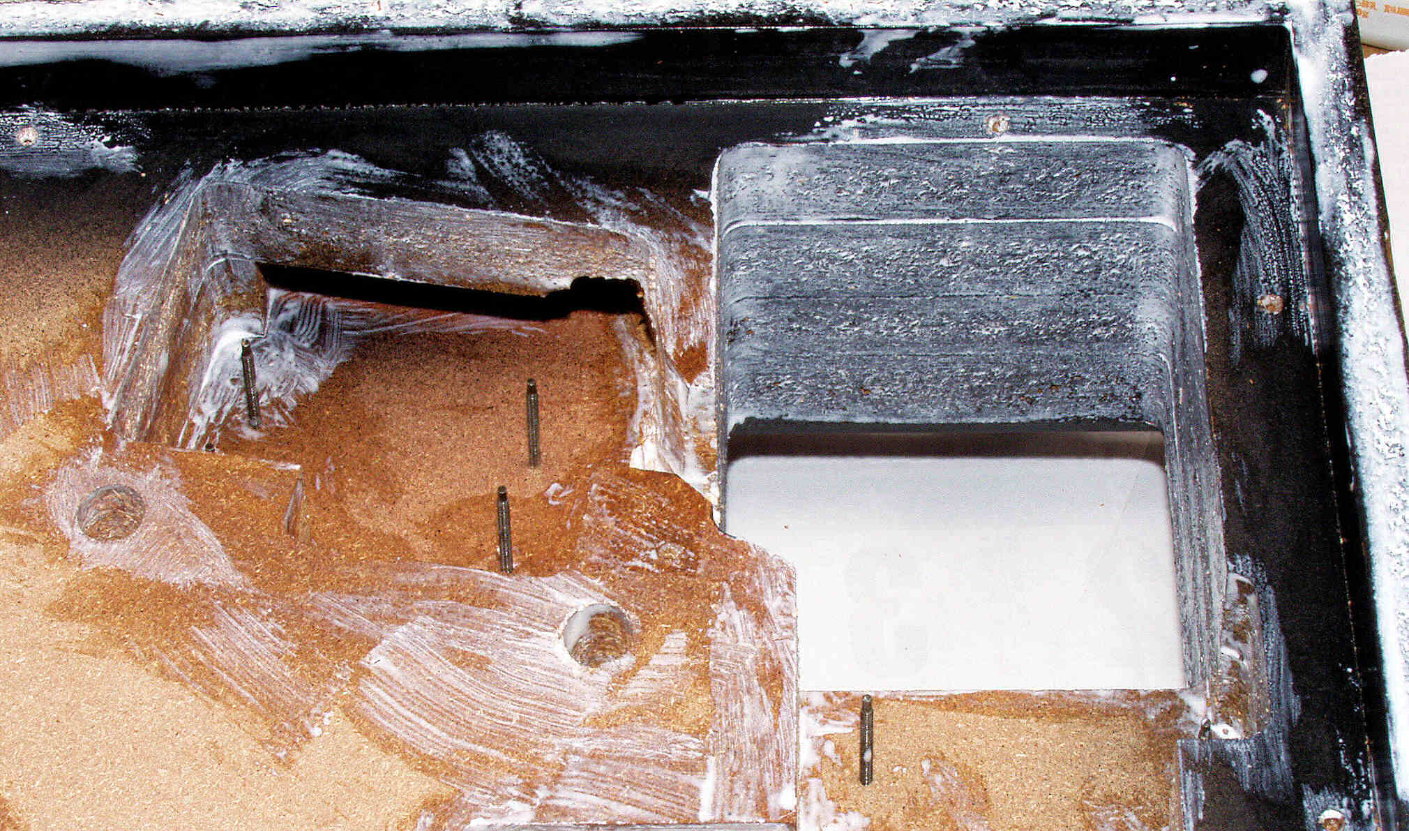 | MD5. 修理後 底板裏、圧縮材の糊がきかなくなり始めているので接着材を流し込む。 | ||||||||||||||||||||||||
