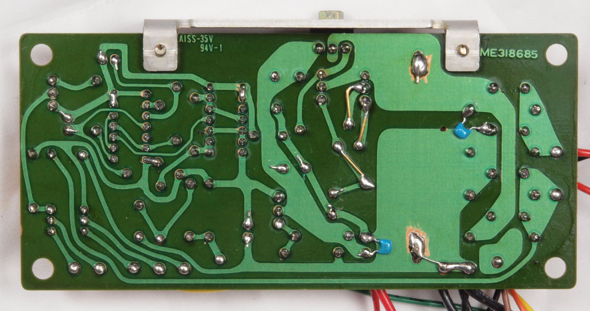 | C44. 完成フューズ基板裏。余分なフラックスを落として、コート液を塗る。 | ||||||||||||||||||||||||