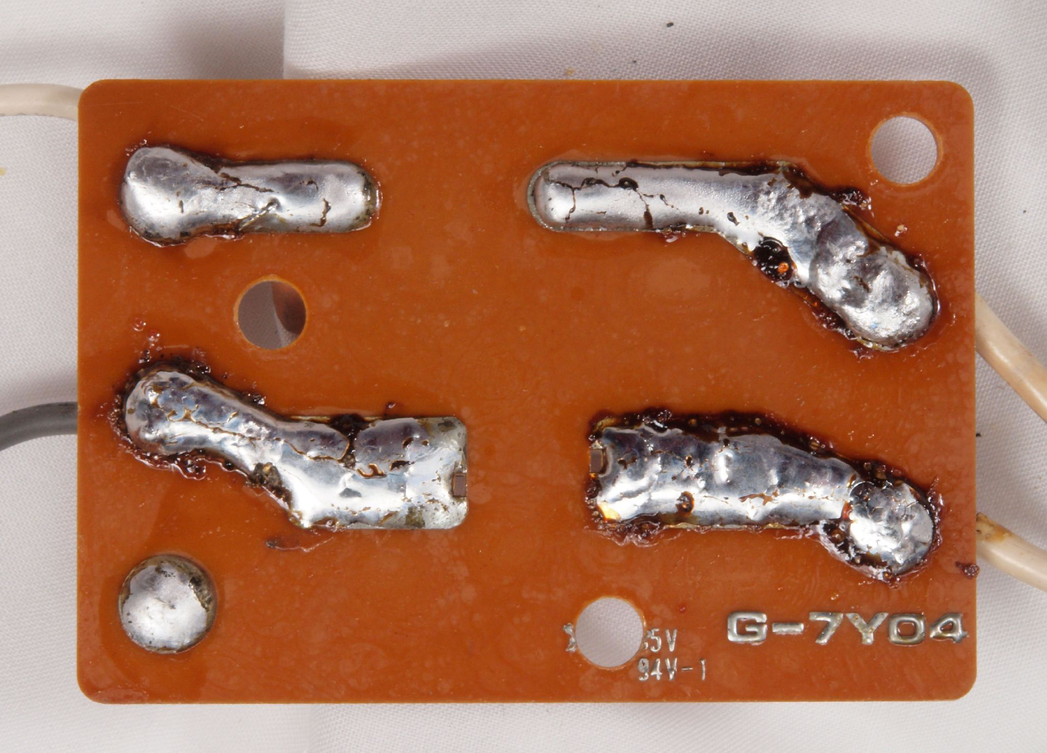 | C43. 修理(半田補正)後 フューズ基板裏。 半田を全部やり直す。 | ||||||||||||||||||||||||