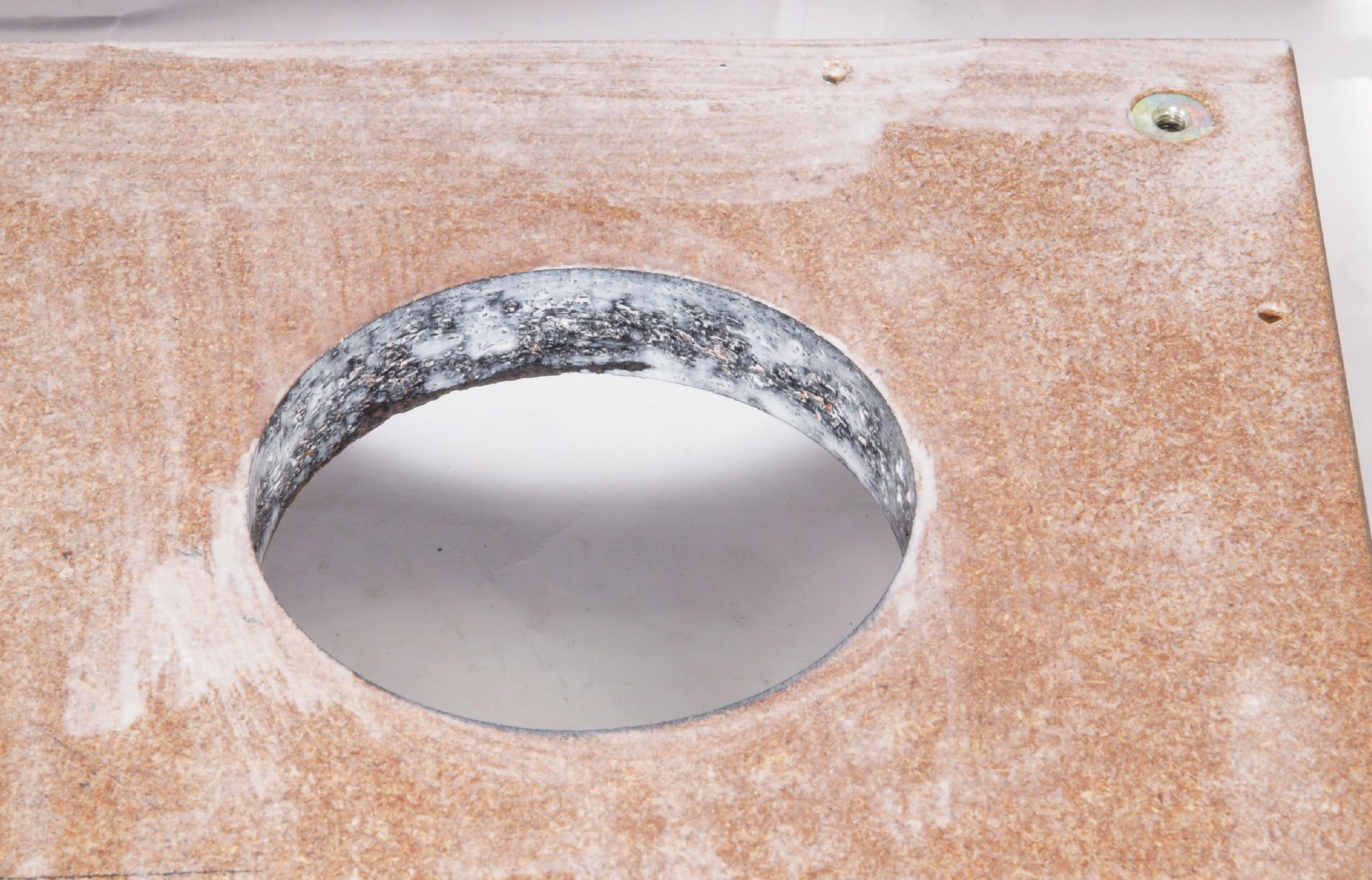 | W7C. 修理後 下蓋のトランスカバー取り付穴、反対側。 乾燥後さらにペンキを塗る。 | ||||||||||||||||||||||||
