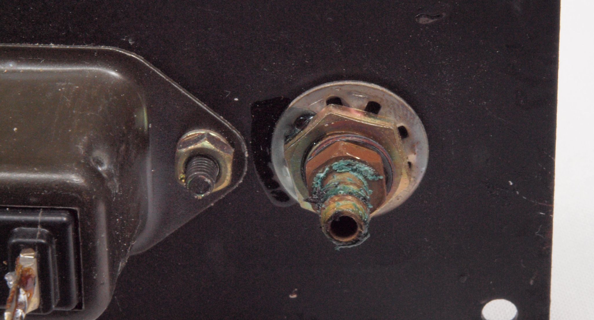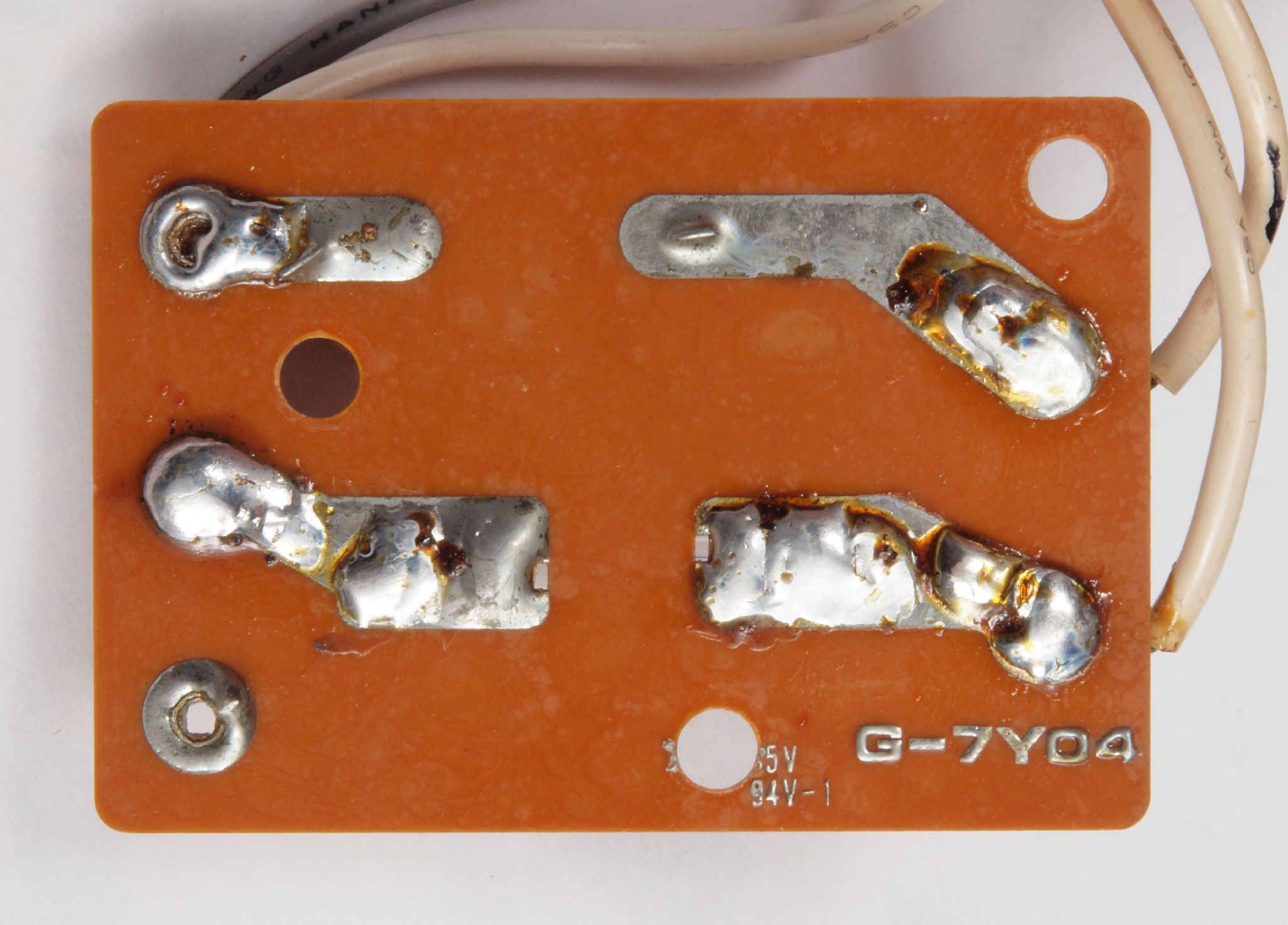 | W54. 修理前 電源ソケット、端子板取付け穴、反対側。 | ||||||||||||||||||||||||