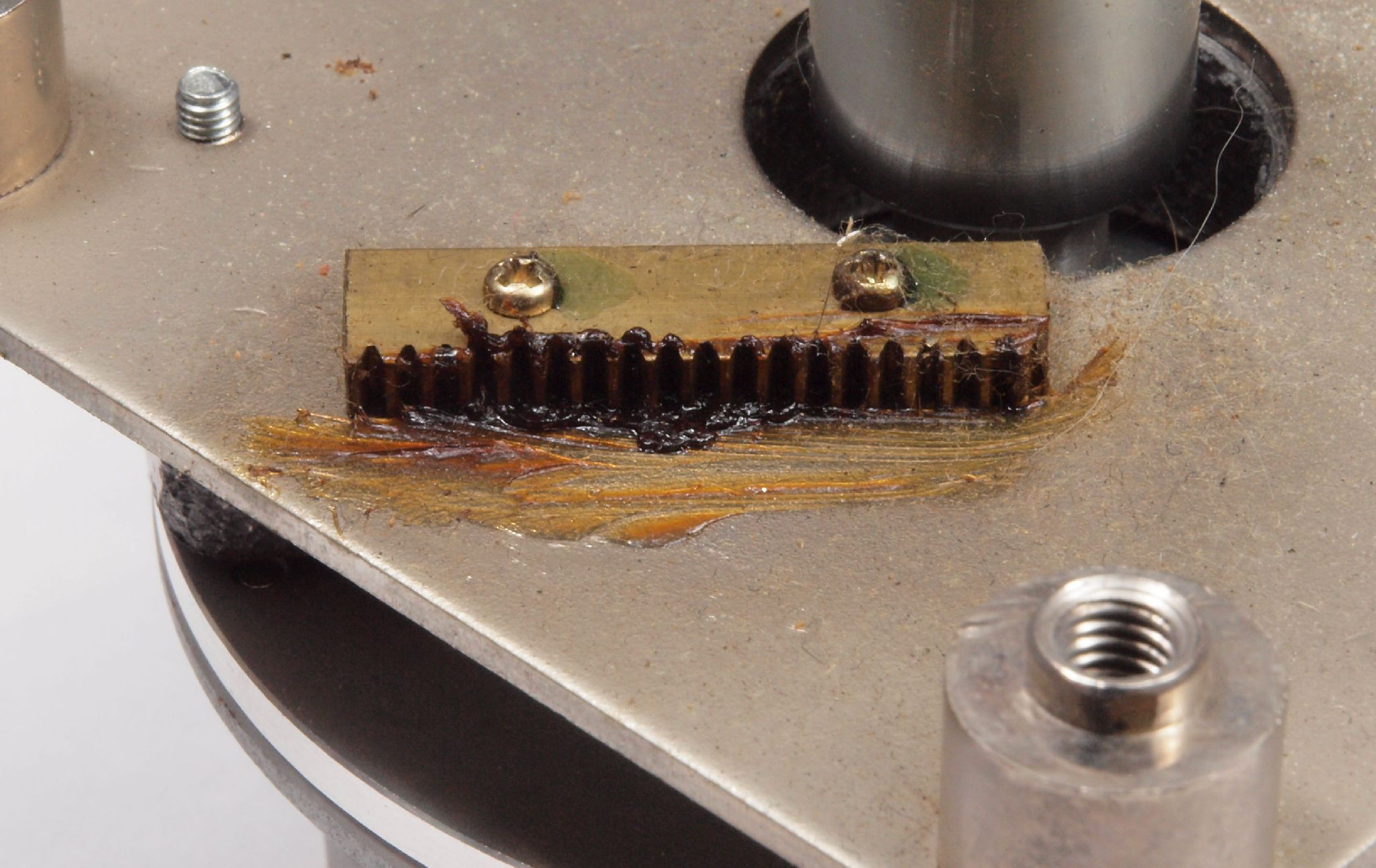 | C53. 修理後 モーター移動用ラック歯車。 固着した古いグリスを撤去。 | ||||||||||||||||||||||||