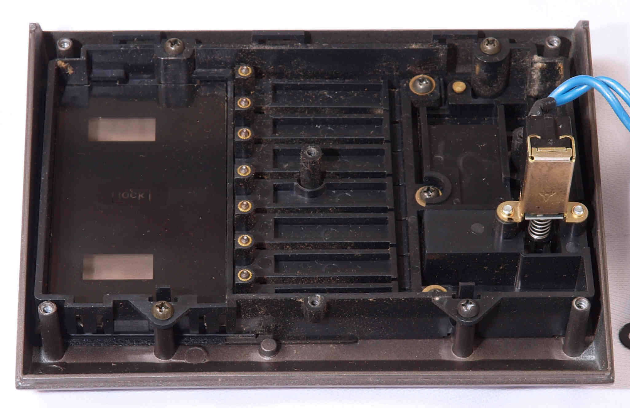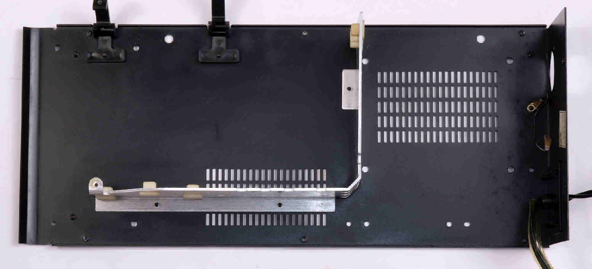A04. 点検中 過去のユーザや修理屋が「SP−10mkV」を取り外そうと試みたキズ後、 手前のカバーのみを持ち上げ、はく離している。