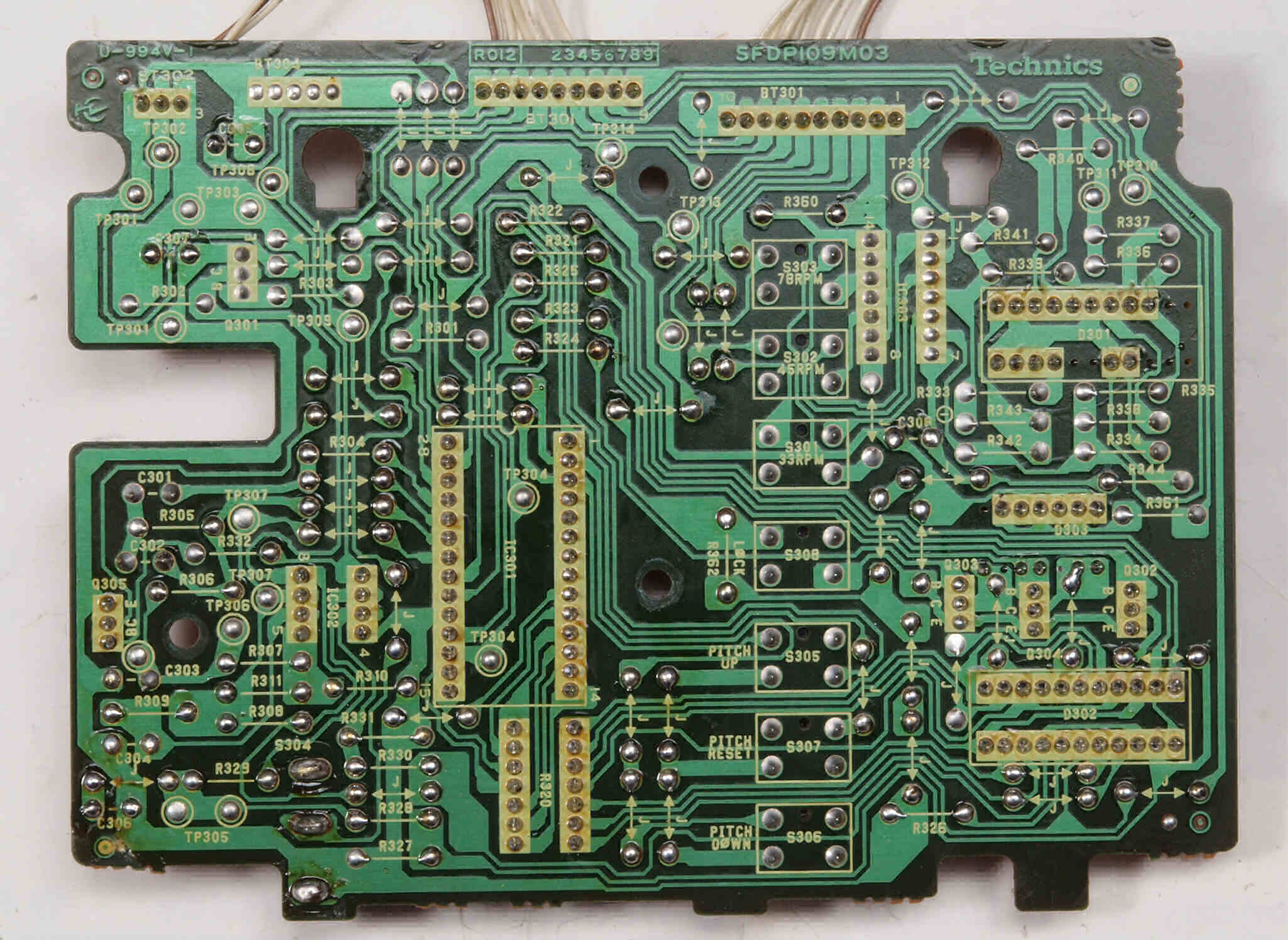 | D35. 完成ターンテーブル操作基板基板裏。 余分なフラックスを落として、コート液を塗る。 | ||||||||||||||||||||||||||||||||||||||||