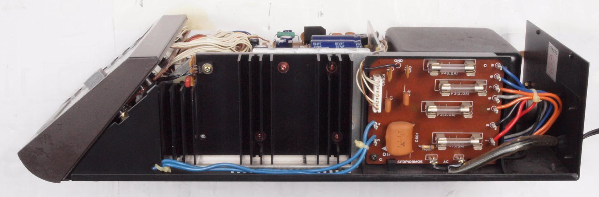 | A672. 電源部点検中 上から見る。放熱器の頭で凸び出し。 | ||||||||||||||||||||||||||||||||||||||||