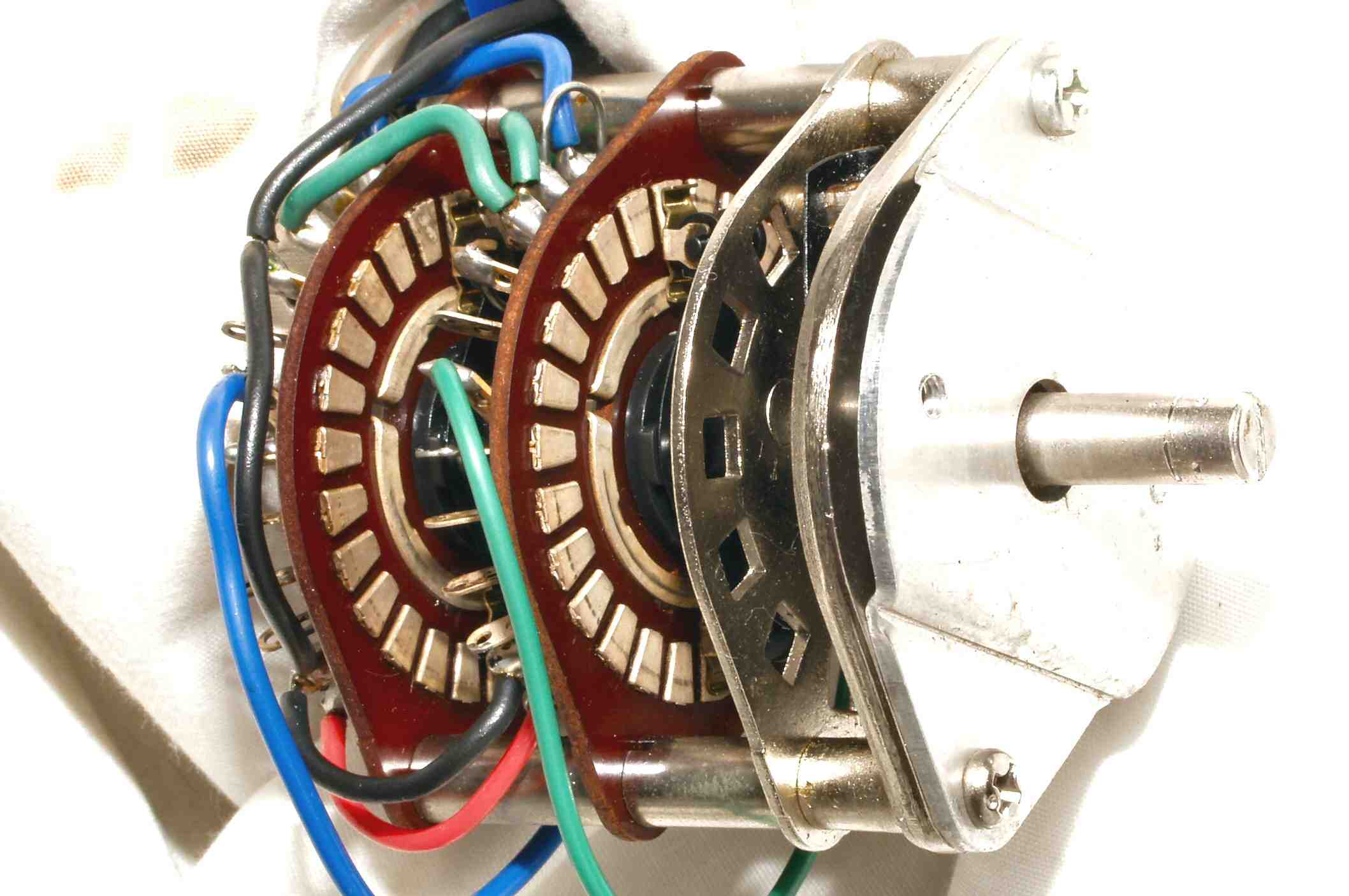 | 1970〜80年代の機器は、接点に「銀メッキ」や「洋銀製」が多い、その為、硫化され、黒い硫化銀や酸化され、白い酸化銀となり、接触不良を起こす。 又、接点復活剤の大量使用で、回転部分にある「グリス」が溶け出し、復活剤が蒸発後、接点の上に被膜を作り、さらに絶縁不良になる。 交換出来れば最良です |