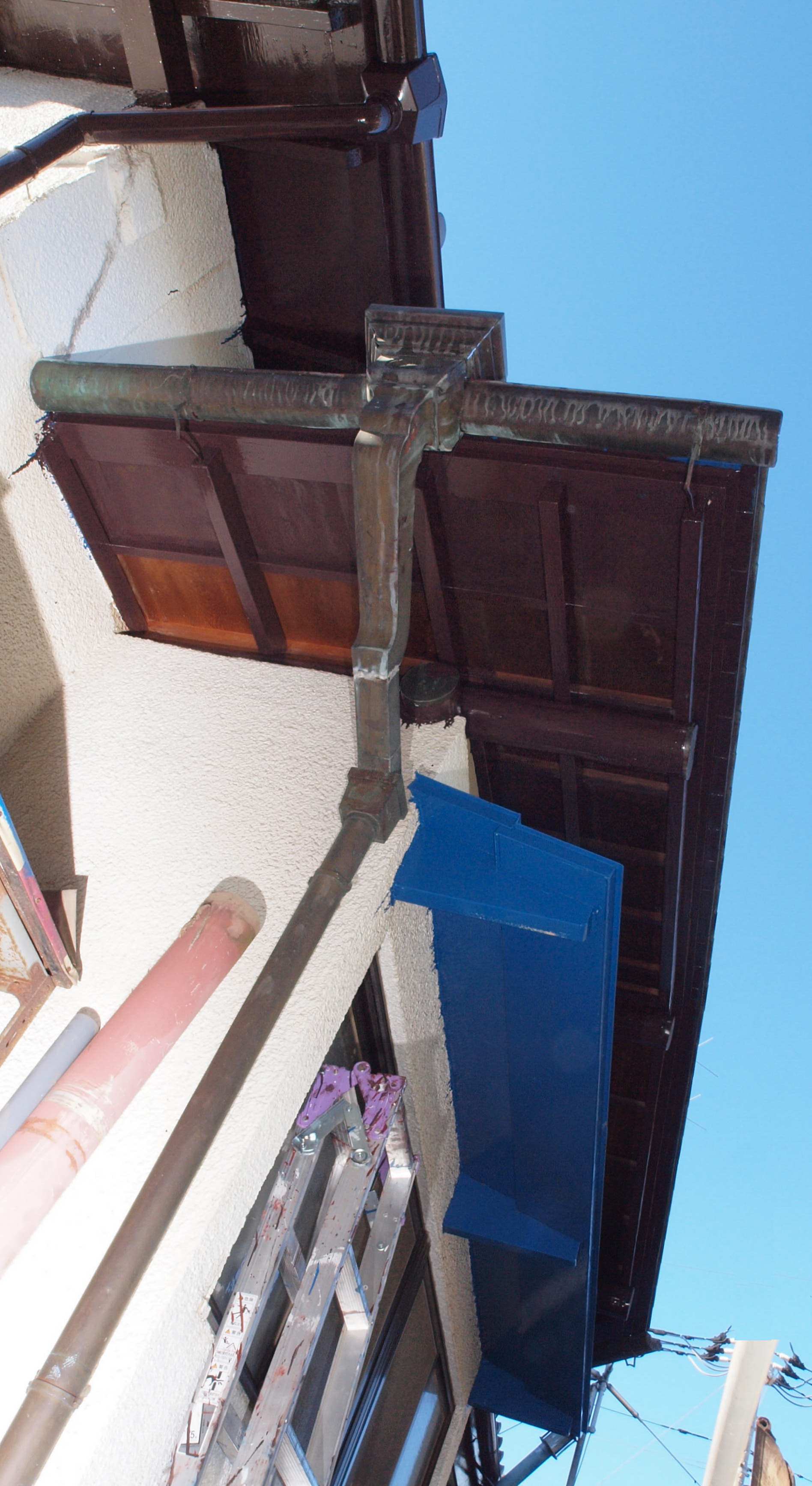 32. 塗装中 西側軒天、1回目の塗装終了。