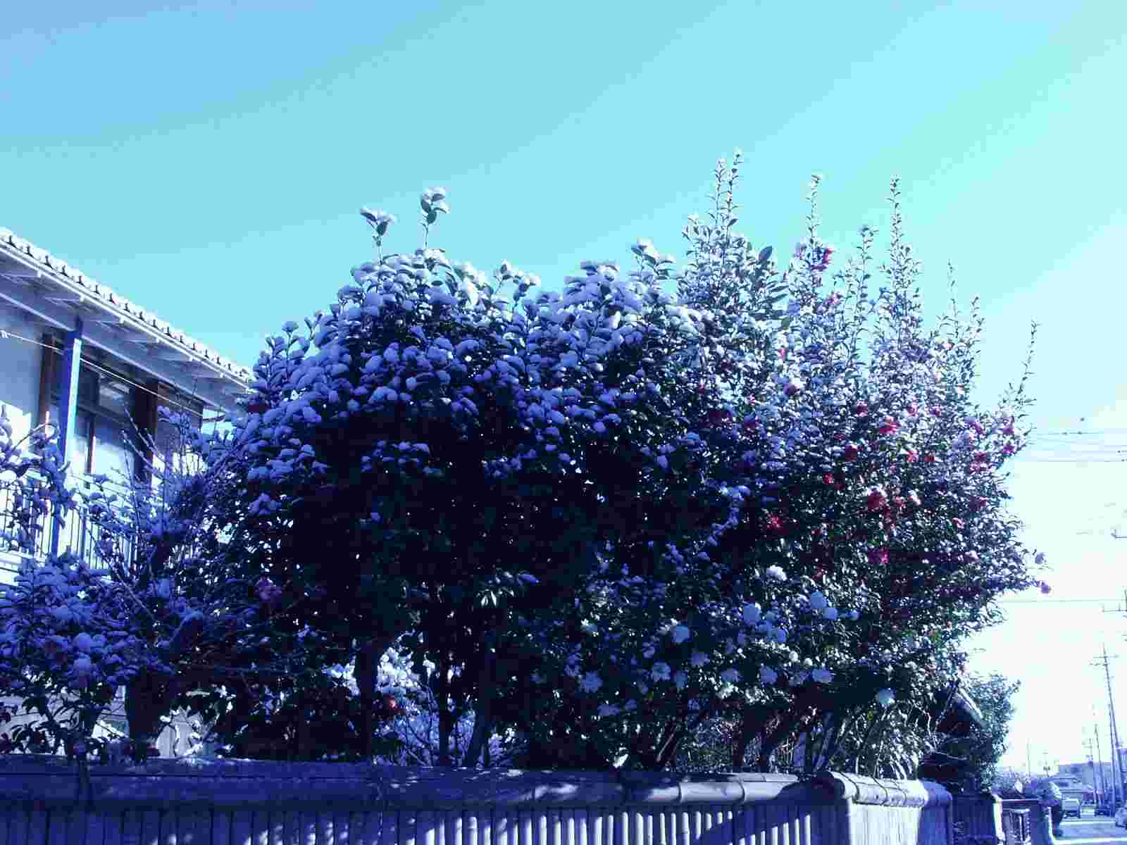 15年1月 雪を被った山紅葉 15年1月 雪を被った椿